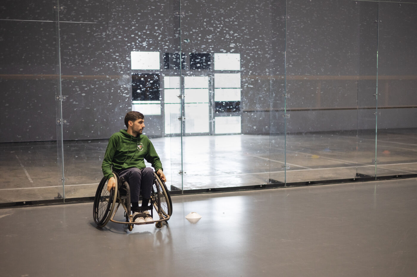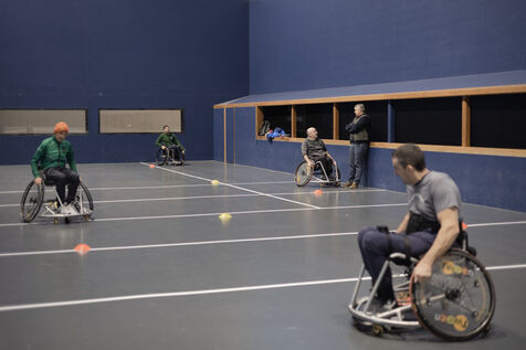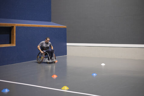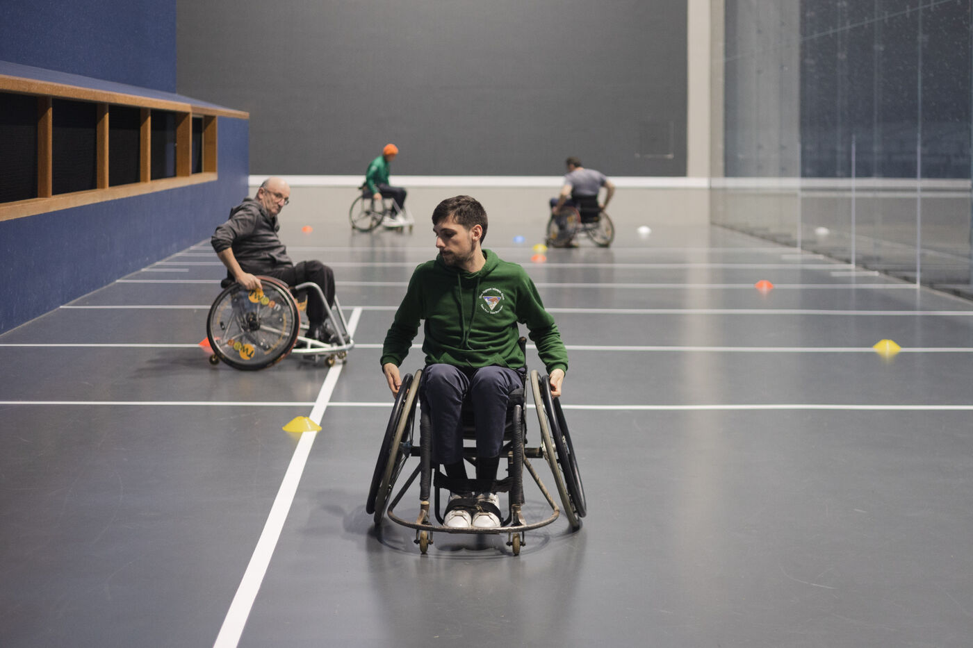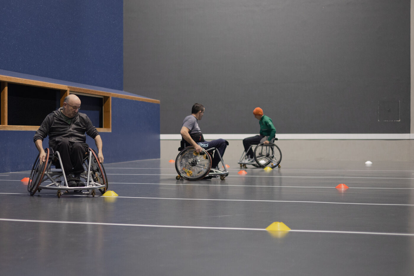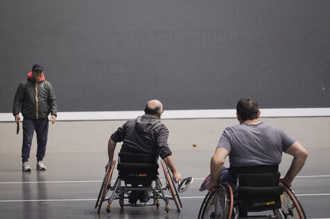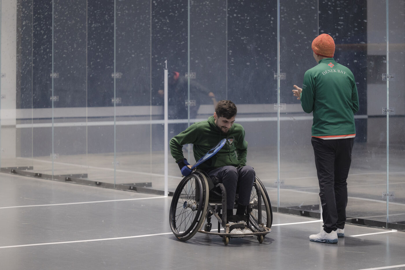 oldy… A small village in the Basque Country, more than an hour from the big cities on the coast and, what’s more, away from the main roads. On this Tuesday afternoon in December, the village, which has about 550 inhabitants, is deserted. Just a few cars in front of the Hoxari trinquet, some of them displaying a card with the handicap logo. Tuesday is training day. At the wall on the left of the village, a handful of people meet around 3pm for a two-hour session: first, a warm-up, then speed and agility exercises and finally, a game.