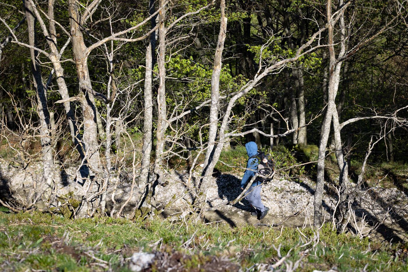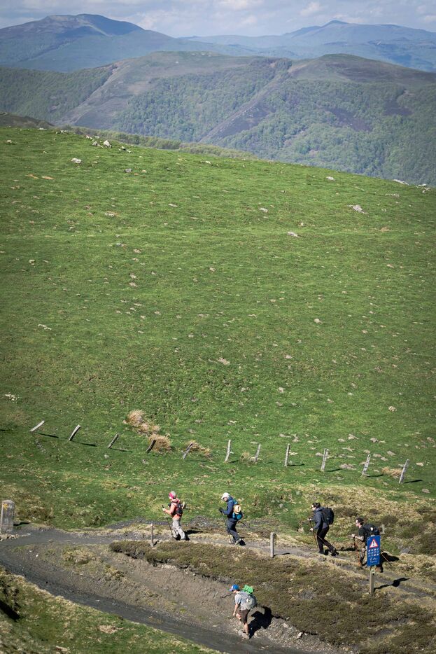 Une fois parvenus à la Croix Thibault, au-dessus de Saint Jean Pied de Port, les pèlerins en route vers Saint Jacques de Compostelle quittent la petite route de montagne pour emprunter le sentier qui leur permettra de traverser la montagne, mais aussi la frontière franco-espagnole.