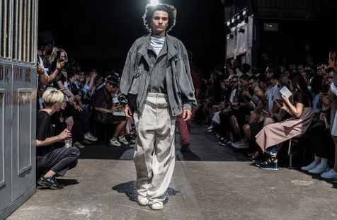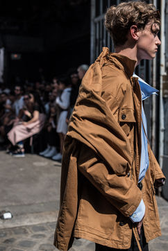Y/Project, the rising Parisian brand, is doing its show at La Générale on June 21, 2017, during the men's fashion week. Crowd bath with fans under an intense heat wave. The young men paraded inside La Générale and went out onto the sidewalk, passing from the spotlights to the brightness of the biting sun. An unexpected moment to see the street take over the collection.