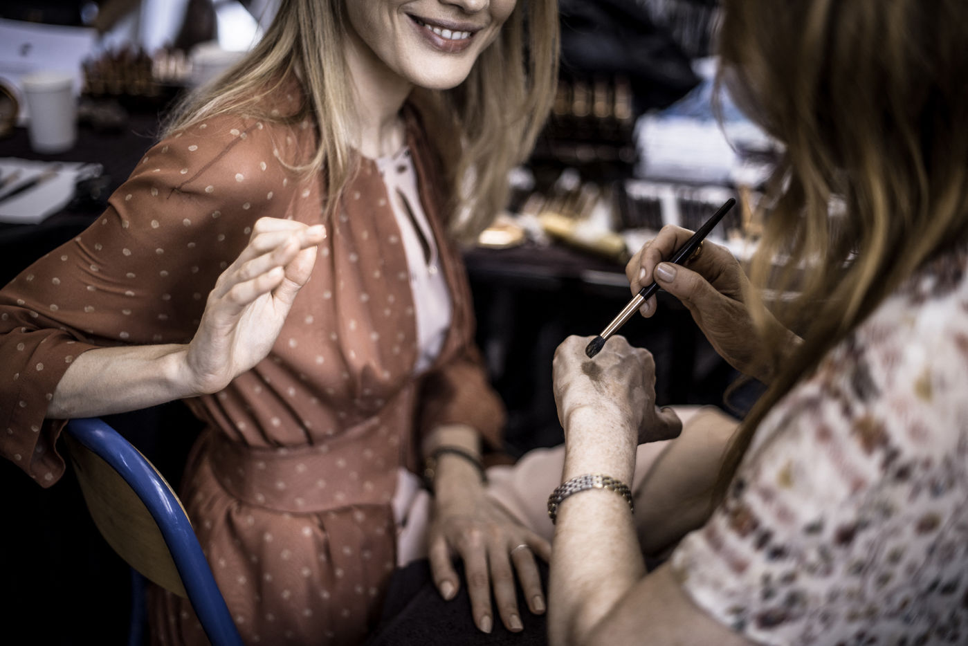 Natalia Vodianova, top model russe, actrice, compagne de Antoine Arnault, a fait une apparition en invitée spéciale au défilé Haute-Couture de sa compatriote Ulyana Sergeenko, le 4 juillet 2017, au Lycée Heni IV. Nous avons assisté au maquillage d'une égérie passée sous l'objectif des plus grands photographes de mode.