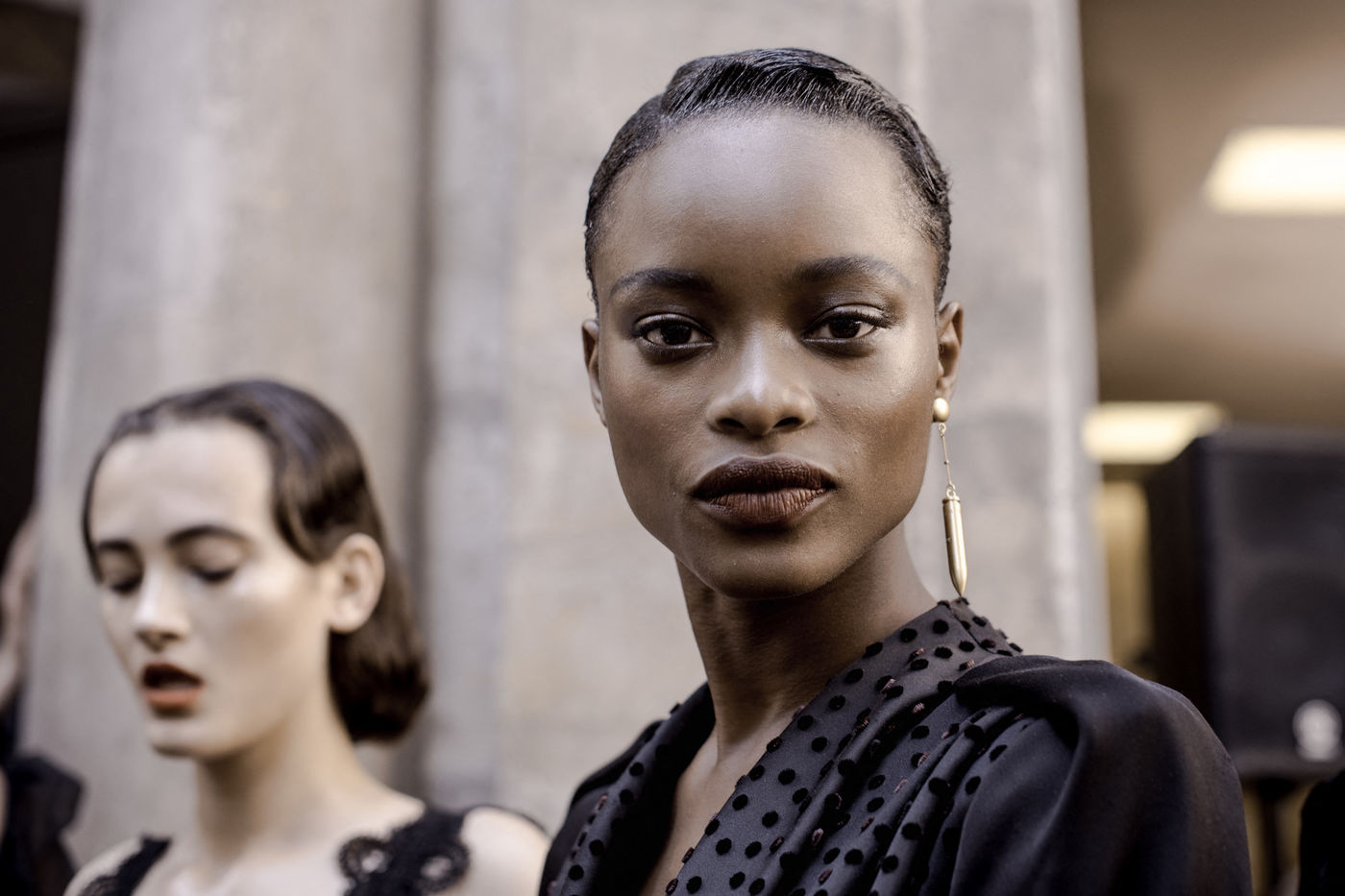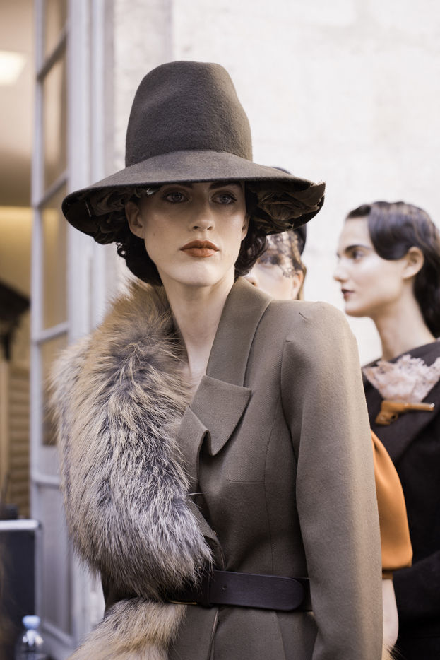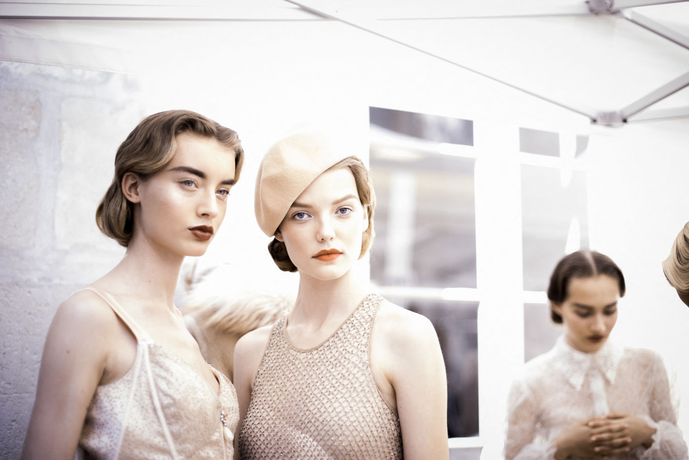 Semaine de la Haute-Couture, le mardi 4 juillet 2017, Ulyana Sergeenko présente sa collection inspirée des femmes fatales à l'époque des gangsters années 40. Aventureuse et froide, l'héroïne d'Ulyana Sergeenko semble sortir des vieux films américains et des romans du vingtième siècle. Très couture, très rétro, sa brigade de top models est vue ici en coulisses et dans l'effervescence, au moment de s'élancer pour défiler.