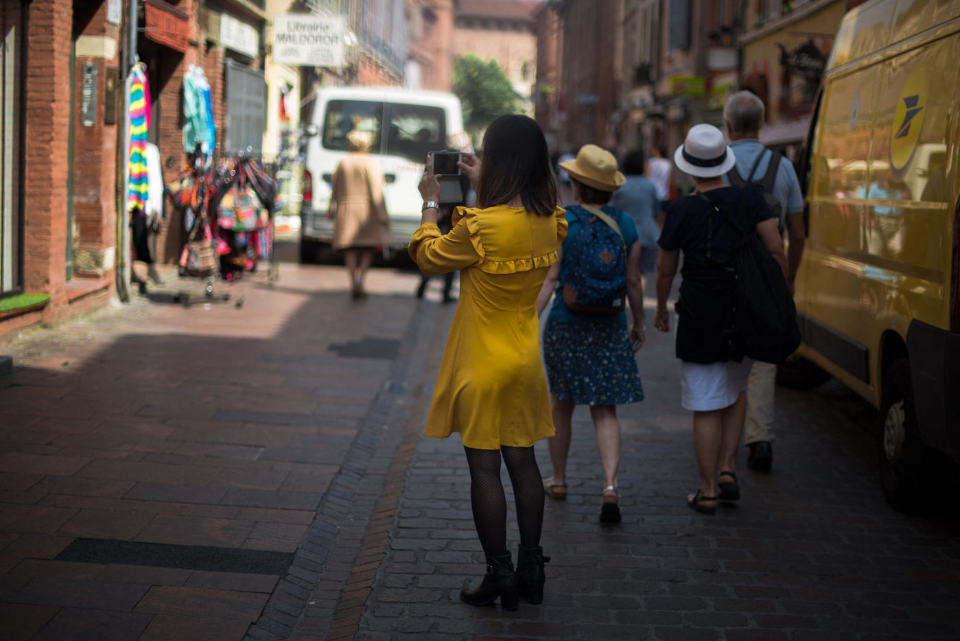The light of early summer transfigures the city center of Toulouse and envelops passers-by and buildings in a magnetic field.