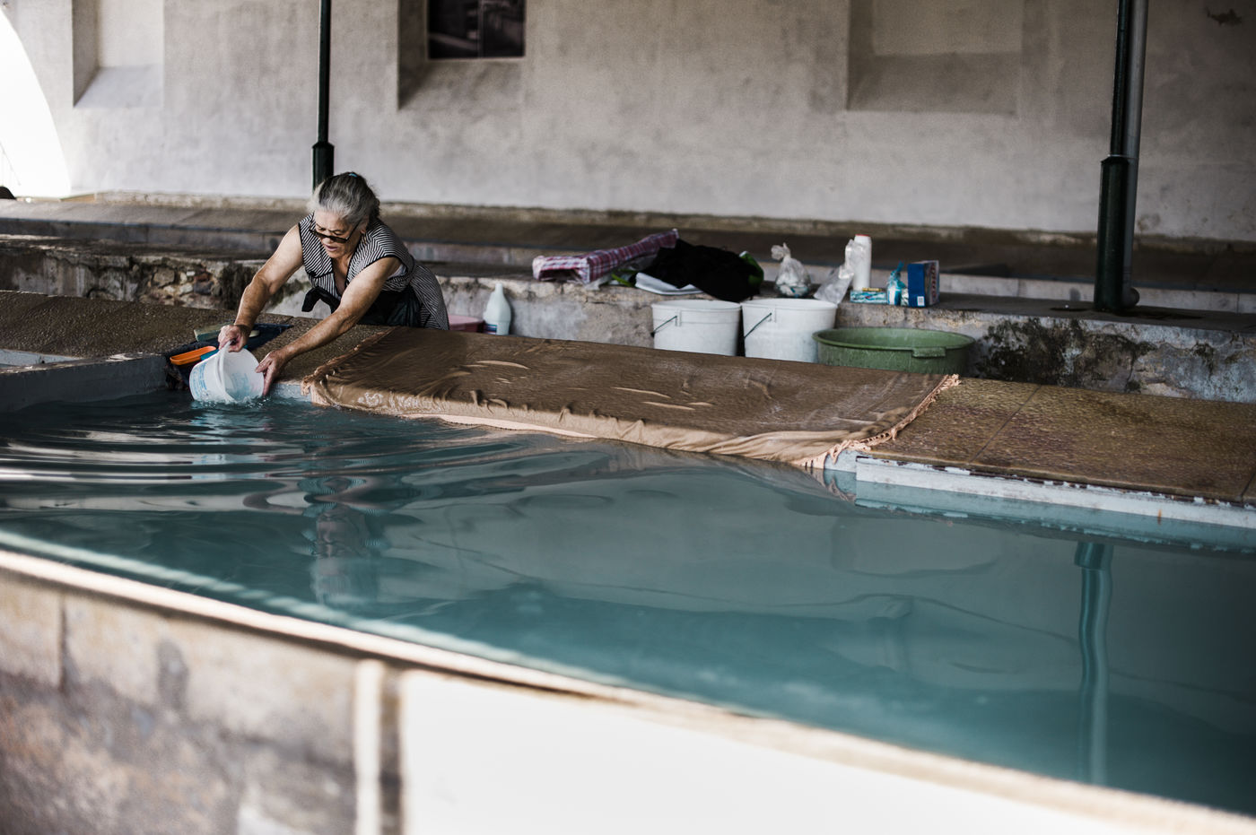 The oldest wash-house, in the old district of Madragoa, reopened in 2014 to the last washerwomen of Lisbon, counted twelve basins. Alvaro Monteiro, son of a washerwoman, was very attached to this old place of Lisbon, hidden but alive. He also washed carpets for various clients. Guardian of the temple, in the summer, he openned the gates every morning to these last few women to come wash clothes and talk for a few hours.