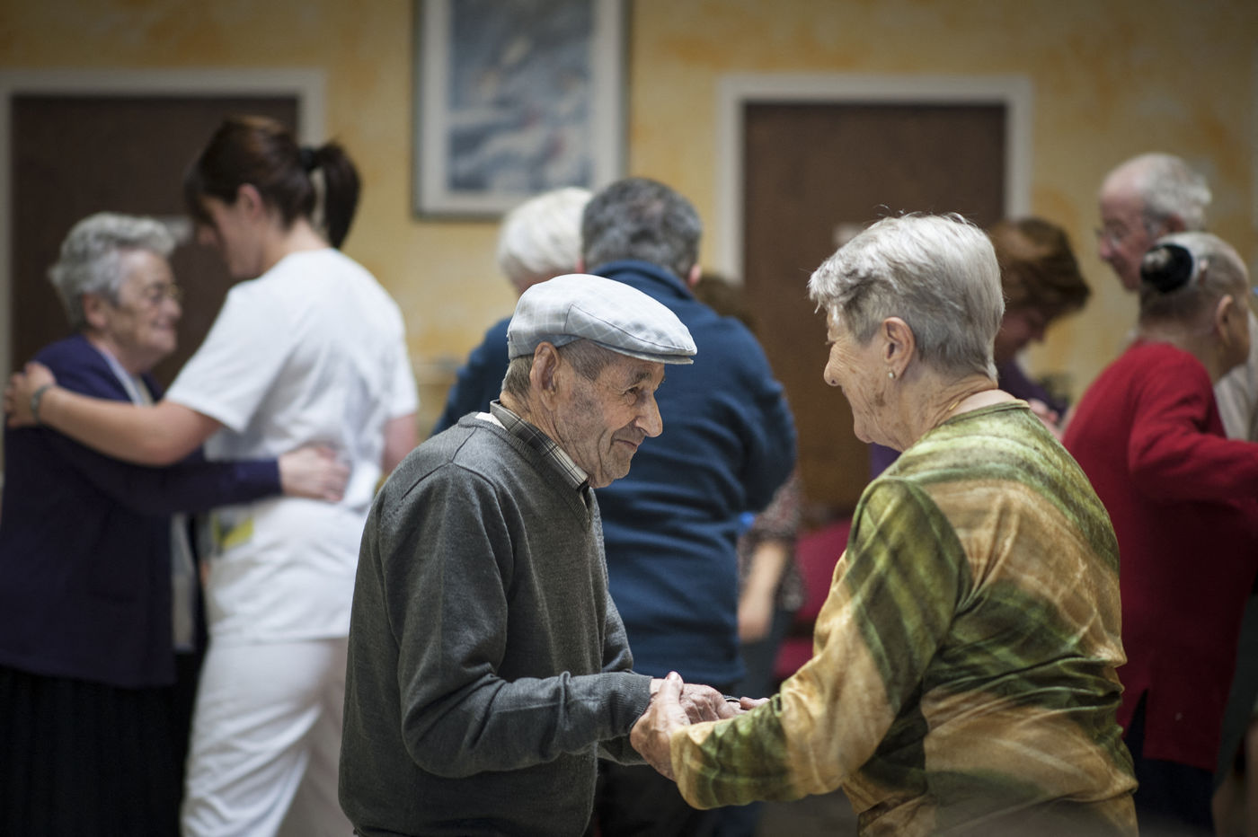 Vieillir chez soi ou bien en maison de retraite médicalisée, dans les vallées du Cantal, c'est bien ce qui est interrogé ici, dans cette sélection, à travers l'expérience interdisciplinaire « Mémoires de bals ». Faire revenir ou stimuler la mémoire en convoquant, par des airs de musique et des pas de danse du répertoire auvergnat du XXe siècle, les souvenirs de jeunesse des personnes aujourd'hui très âgées, était un des objectifs de ce projet. Ce temps passé sur place a permis d'aller à la rencontre de nombreux Cantalous nés autour des années 20 et de d'observer, en écoutant leurs souvenirs et en imaginant ce qu'était leur vie d'alors, leurs conditions de vie actuelle dans leur environnement personnel ou dans leur chambre de pensionnaire. Ces images de personnes, parfois centenaires ou presque, vivant isolées ou en coeur de village, seules ou en EHPAD sont un contrepoint aux entretiens menés par l'ethnologue Lucie Braun.