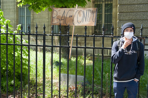 A HUNDRED HIGH SCHOOL AND BTS STUDENTS GATHERED NEAR THE MINISTRY OF NATIONAL EDUCATION.