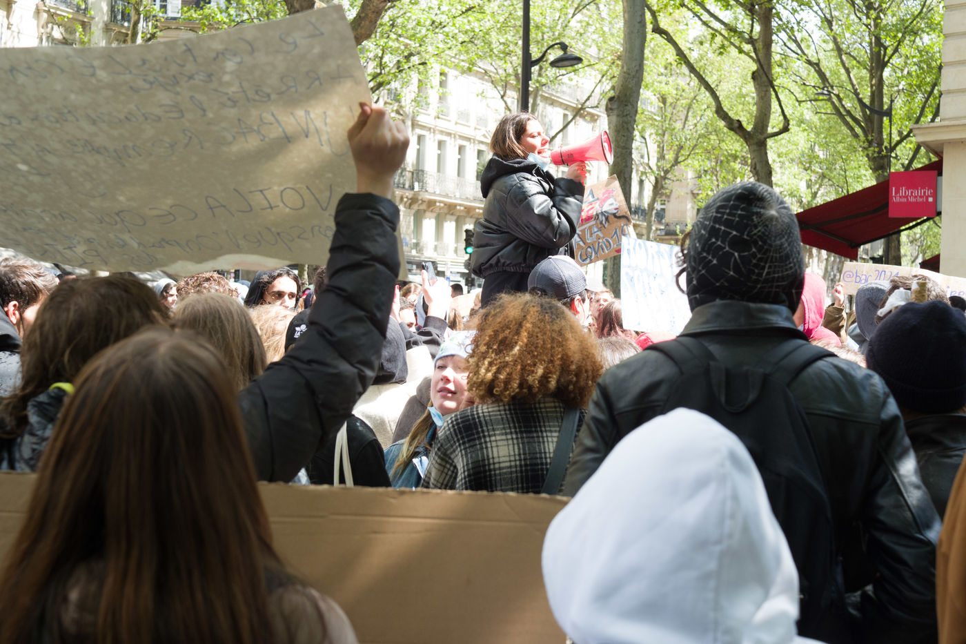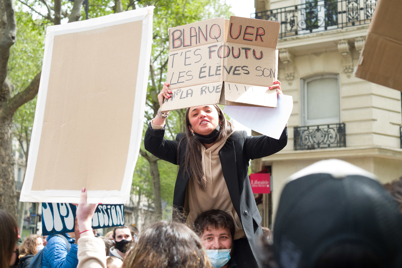 UNE CENTAINE DE LYCEENS ET DE BTS SE SONT RASSEMBLES PRES DU MINISTERE DE L'EDUCATION NATIONALE.