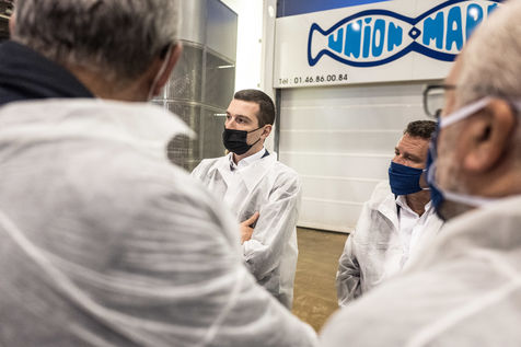 ORDAN BARDELLA VISITS THE INTERNATIONAL MARKET OF RUNGIS WITHIN THE FRAMEWORK OF THE ELECTORAL CAMPAIGN OF THE REGIONALES OR HE IS CANDIDATE RASSEMBLEMENT NATIONAL FOR THE PRESIDENCY OF THE REGION ILE DE FRANCE.