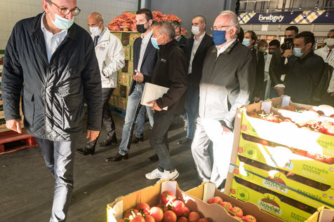JORDAN BARDELLA VISITE LE MARCHE INTERNATIONNAL DE RUNGIS DANS LE CRDES DE LA CAMPAGNE ELECTORALE DES REGIONALES OU IL EST CANDIDAT POUR LA PRESIDENCE DE LA REGION ILE DE FRANCE.