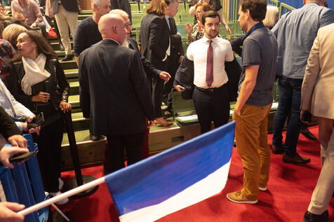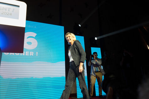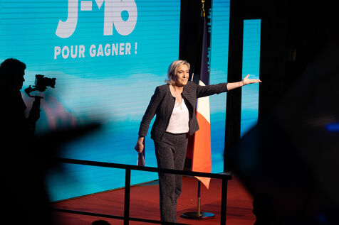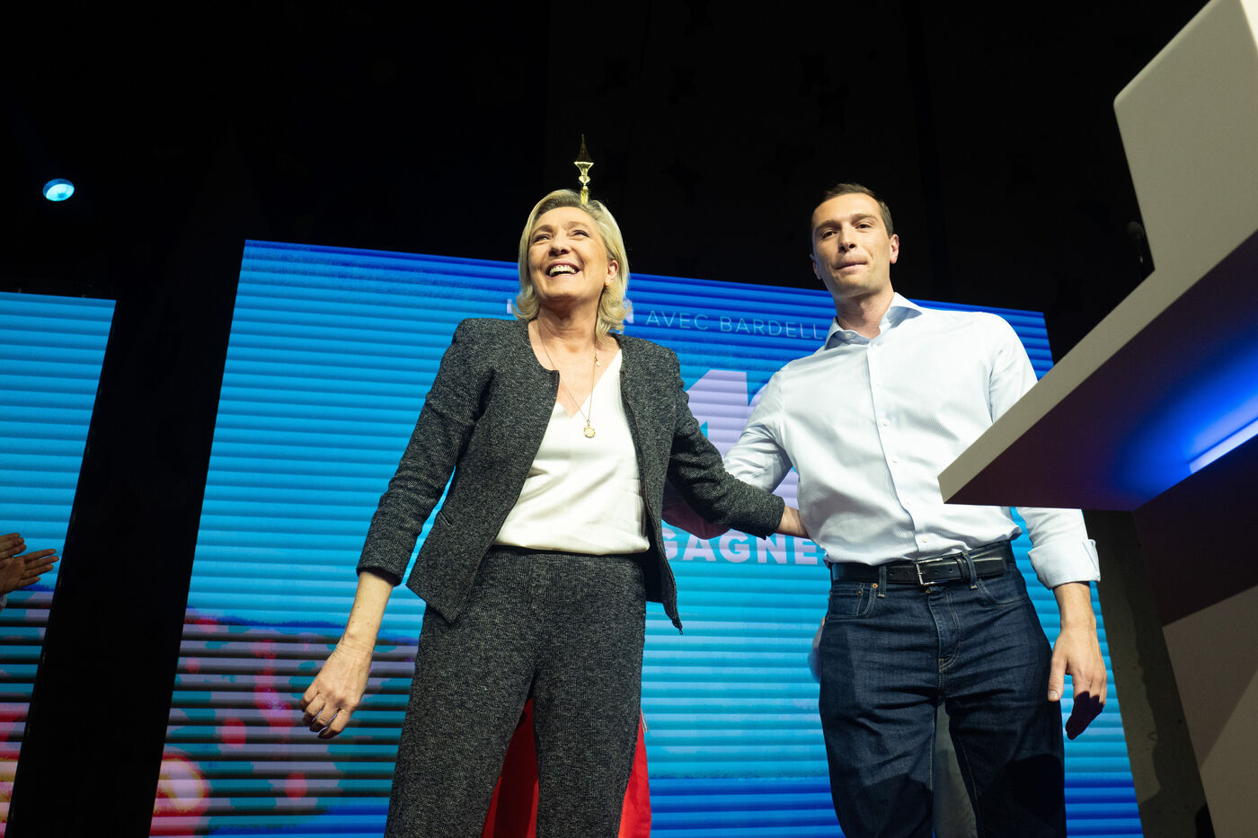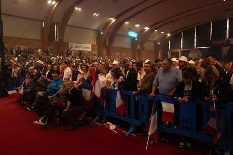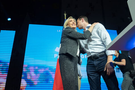 FRANCE - MEETING DU RN A HENIN BEAUMONT JORDAN BARDELLA ET MARINE LEPEN