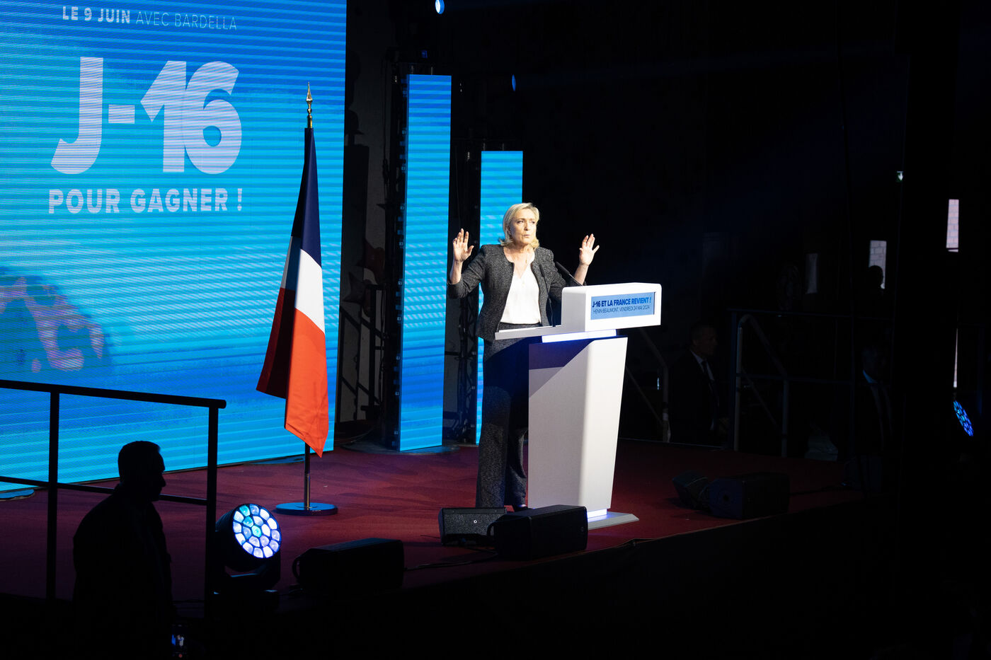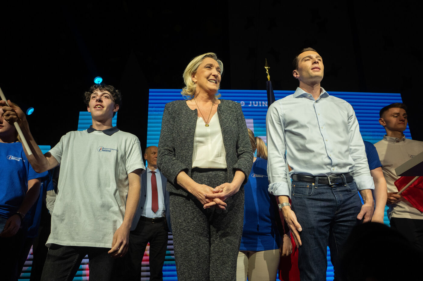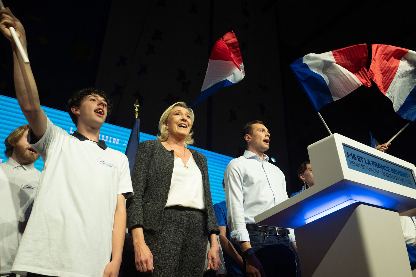MEETING DU RN A HENIN BEAUMONT JORDAN BARDELLA ET MARINE LEPEN
