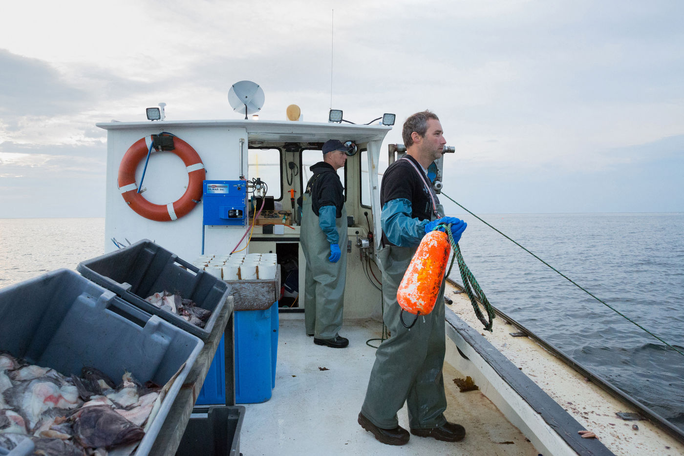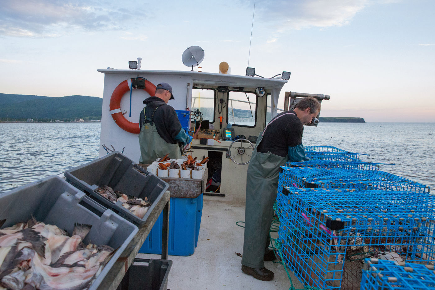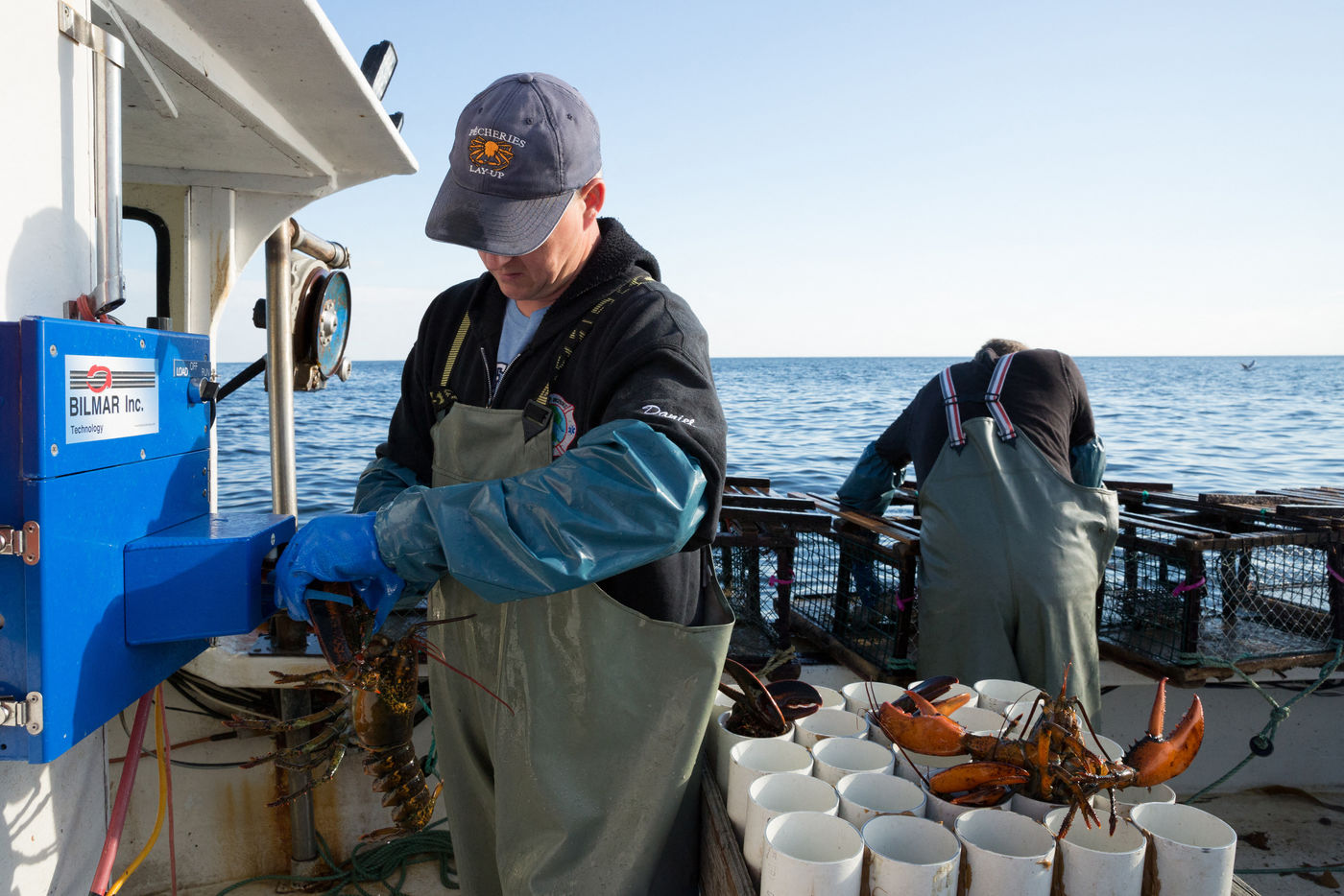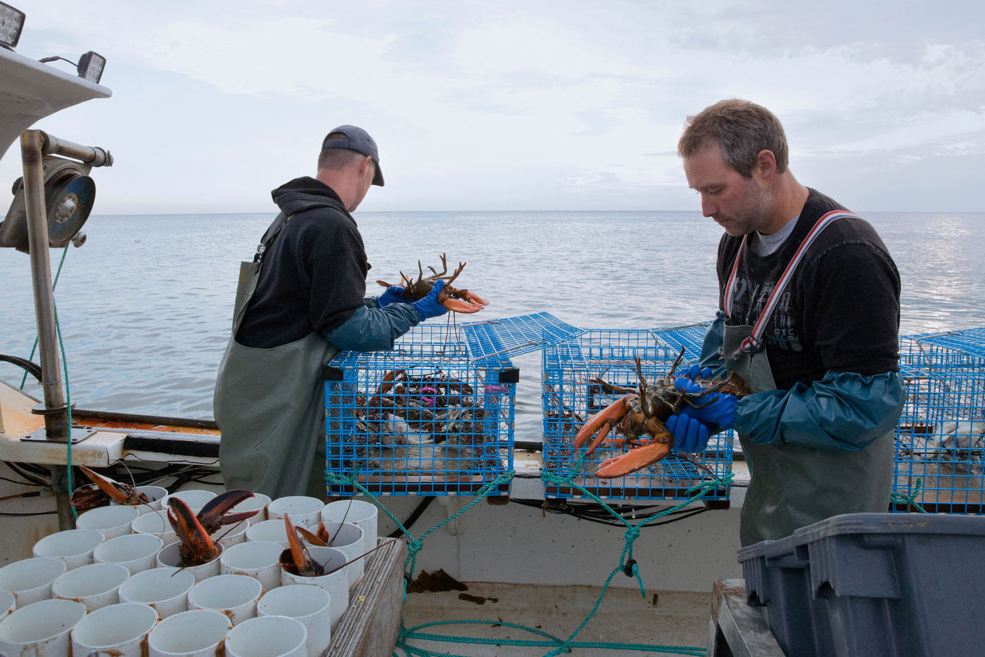 Chaque pêcheur possède 235 casiers qu'il relève tous les jours. Les plus petits homards, les femelles avec des ?ufs et les grands mâles reproducteurs sont relâchés afin de préserver l'environnement.