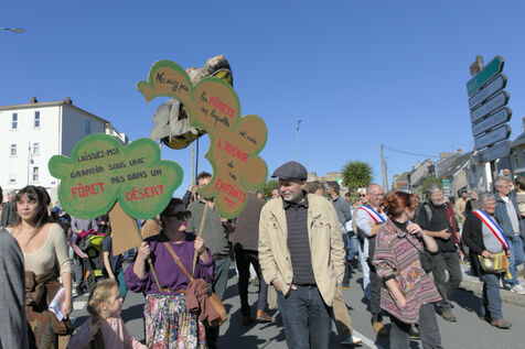 3,000 people demonstrated in the streets of Guéret on Saturday 5 October 2024 to say no to the Biosyl plant. Biosyl is a pellet factory which, according to the associations opposing its construction, risks increasing deforestation and destroying many small local sawmills. The planned site is rich in biodiversity. In attendance were environmental associations (France Nature Environnement, Greenpeace), trade unions (CGT, Confédération paysanne), MPs (Mathilde Panot and Berenger Cernon - LFI), an MEP (Marie Toussaint - Les écologistes), regional councillors (Jean-Lous Pagès and Amandine Dewaele - Les Ecologistes), local councillors including Marie-Françoise Fournier, the mayor of Guéret, etc...
