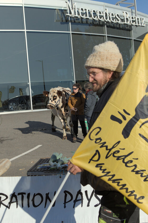 On Friday 22 November, around forty farmers belonging to the Confédération paysanne (farmers' union) gathered outside the Mercedes dealership in Limoges (Haute-Vienne) to denounce the free trade agreement between the European Union and the Mercosur countries. For the union, agriculture and food cannot be used as bargaining chips in international trade. They refuse to allow animals to be traded for cars, hence their presence at this particular location.