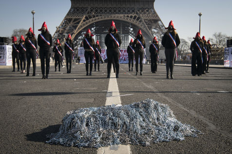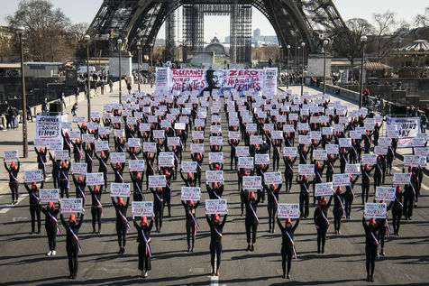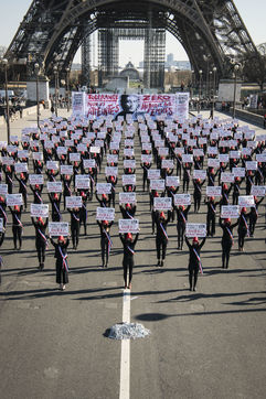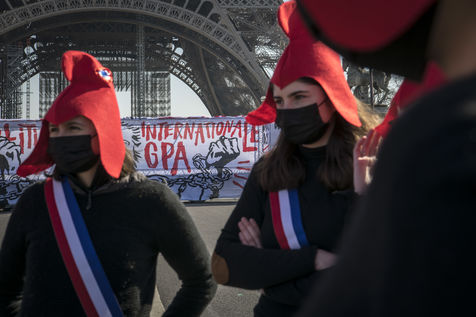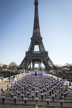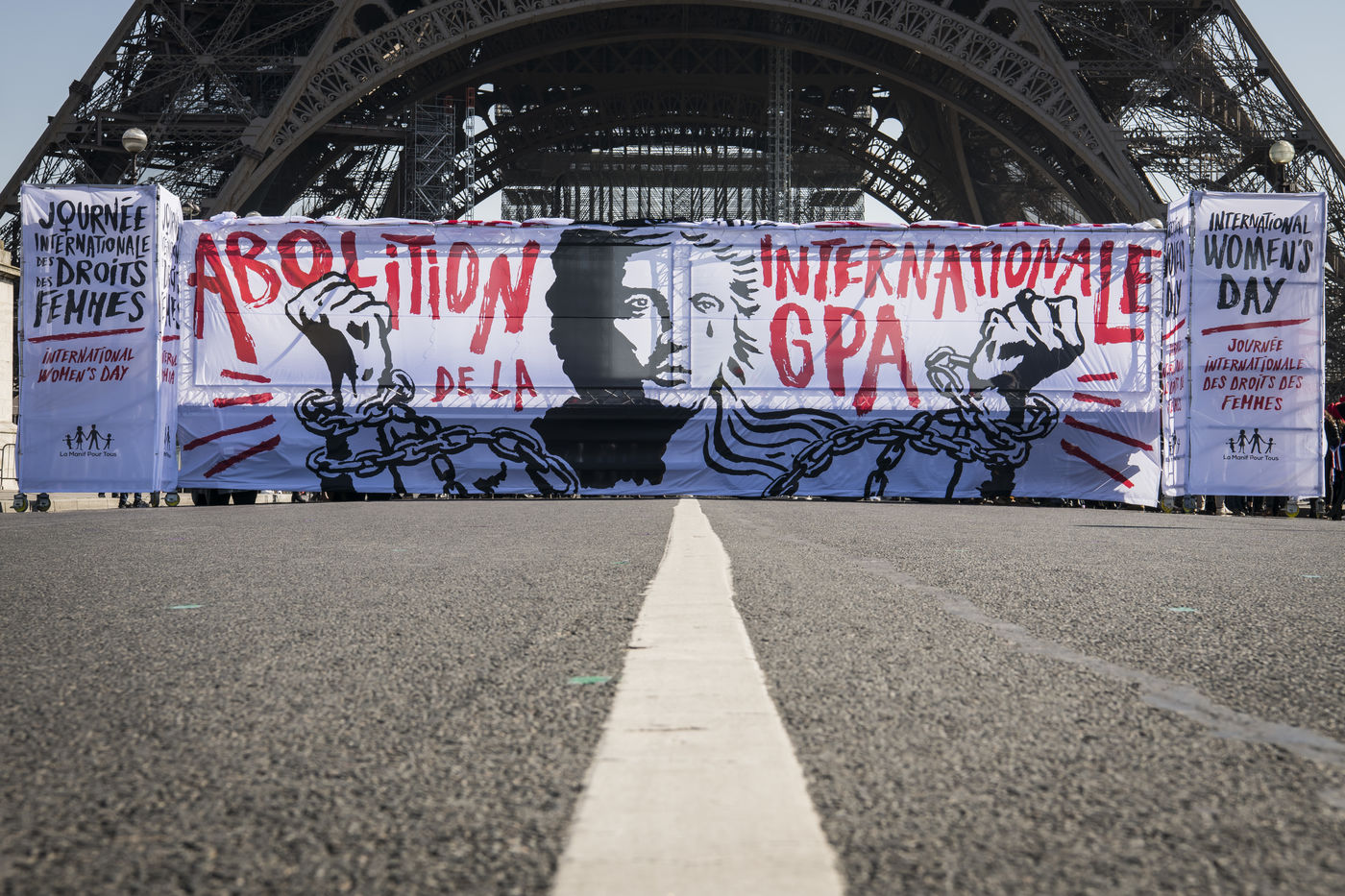 A la veille de la journée internationale des droits des femmes, La Manif Pour Tous s'est mobilisée contre la GPA et la PMA sans père. Invitant la presse 268 Mariannes ont participé à une scénographie et interpelé Emmanuel Macron contre les atteintes et les menaces pour les droits des femmes, aux pieds de la Tour Eiffel.