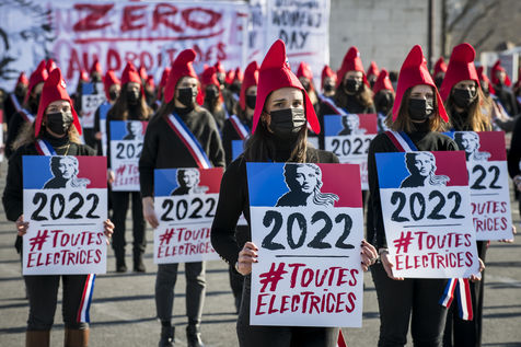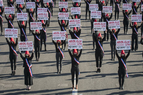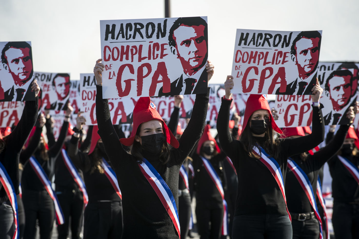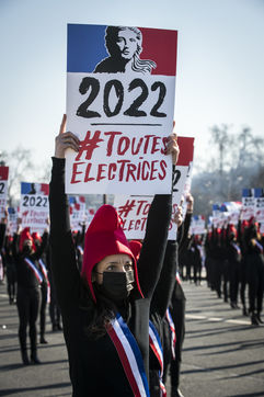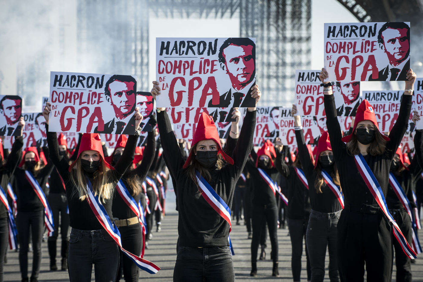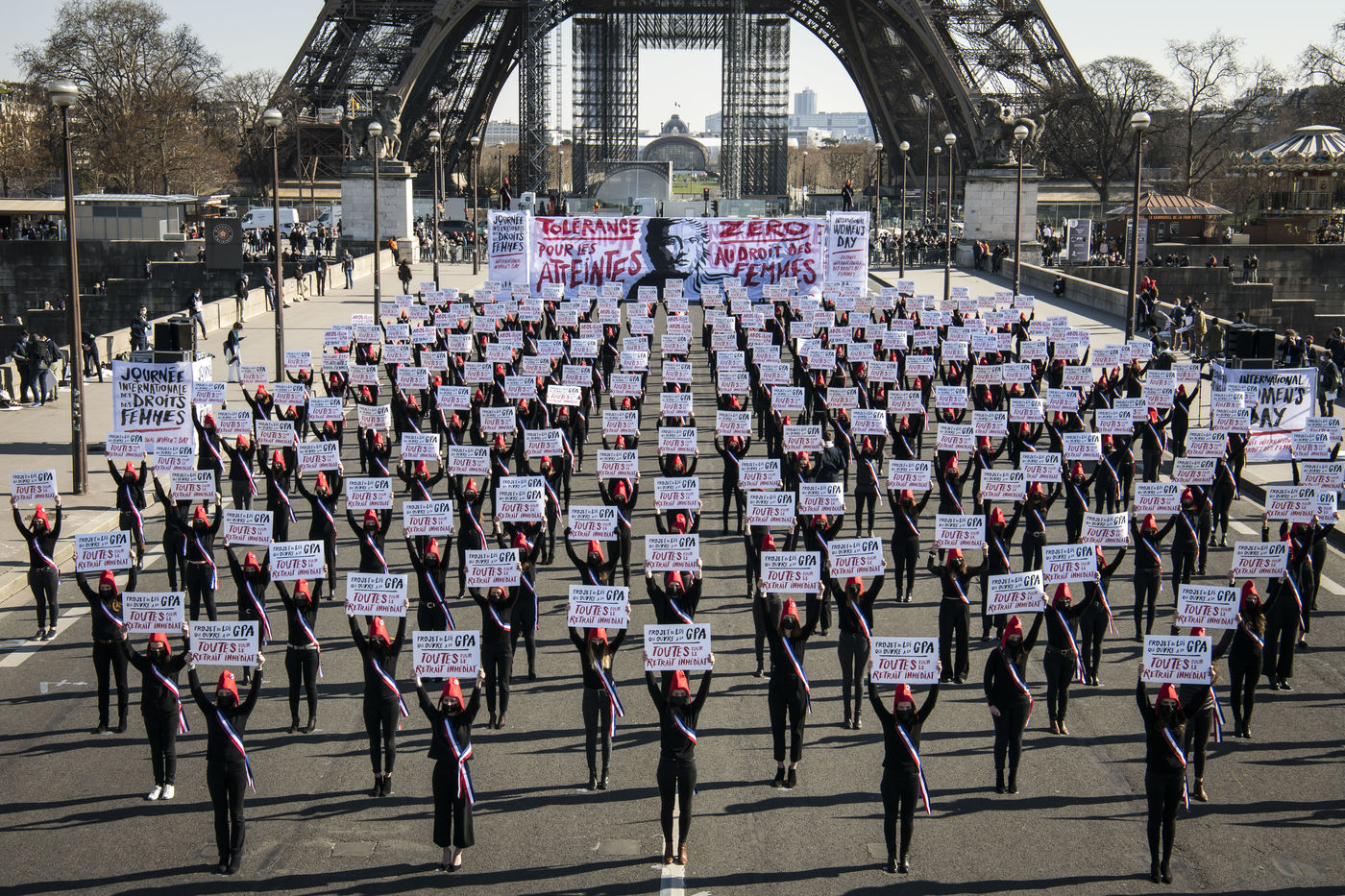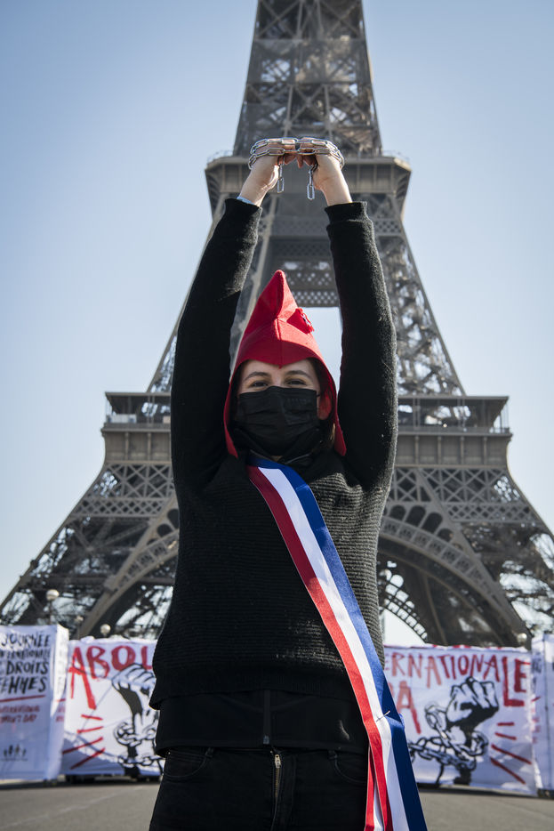 On the eve of International Women's Rights Day, the Manifesto Pour Tous mobilized against FGM and fatherless LDCs. Inviting the press 268 Mariannes participated in a scenography and questioned Emmanuel Macron against the attacks and threats to women's rights, at the foot of the Eiffel Tower.