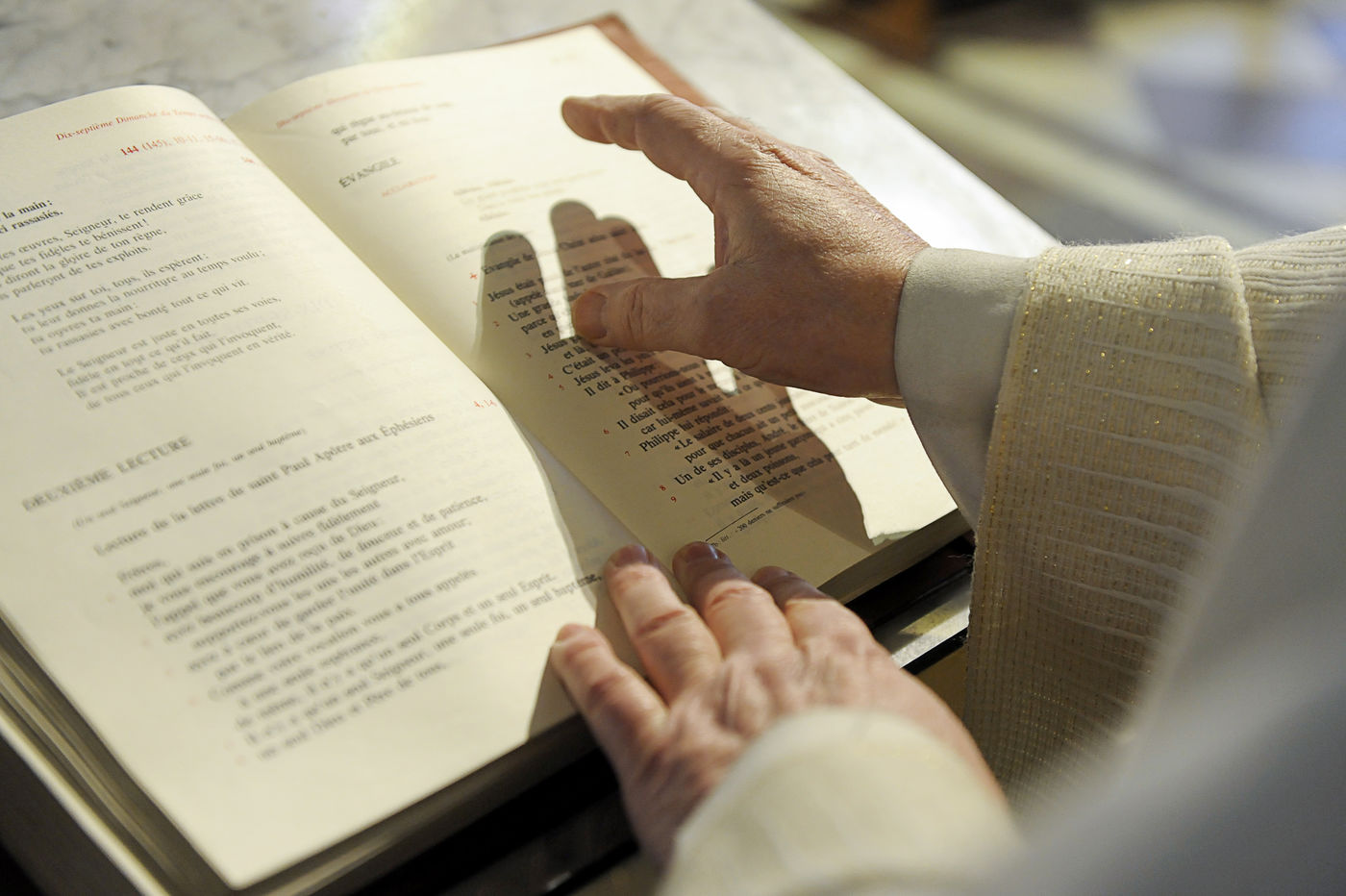 La messe se répartit en deux grands moments avec la liturgie de la parole et la liturgie de l'Eucharistie.