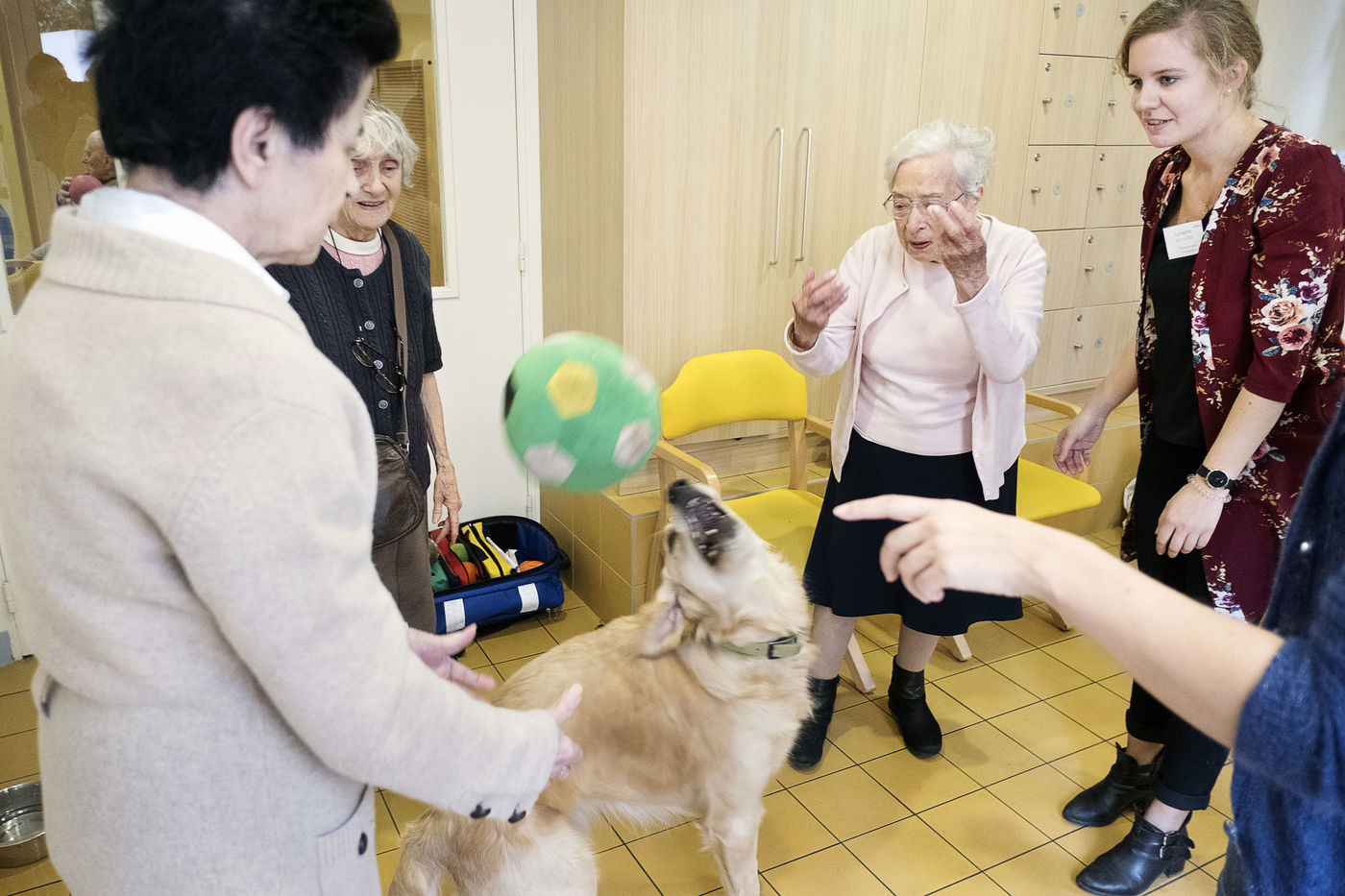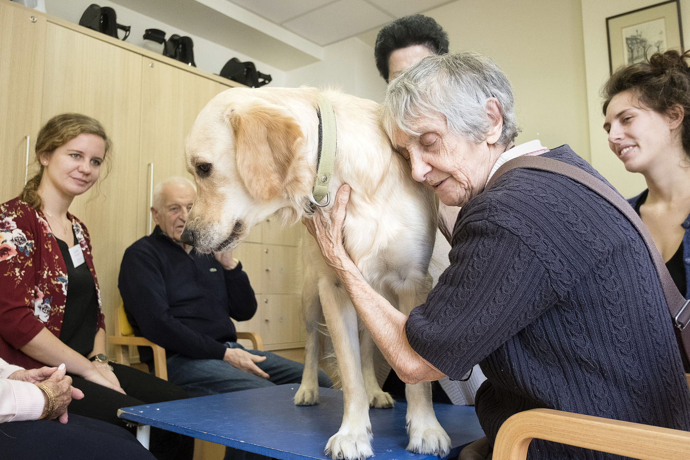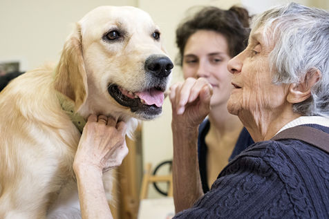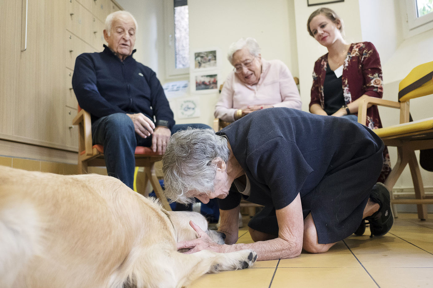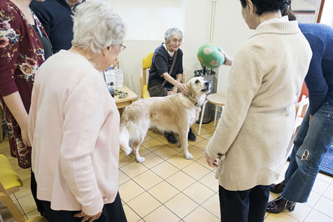 Atelier de zoothérapie avec la chienne Nova, dans la lutte contre la maladie d'Alzheimer.