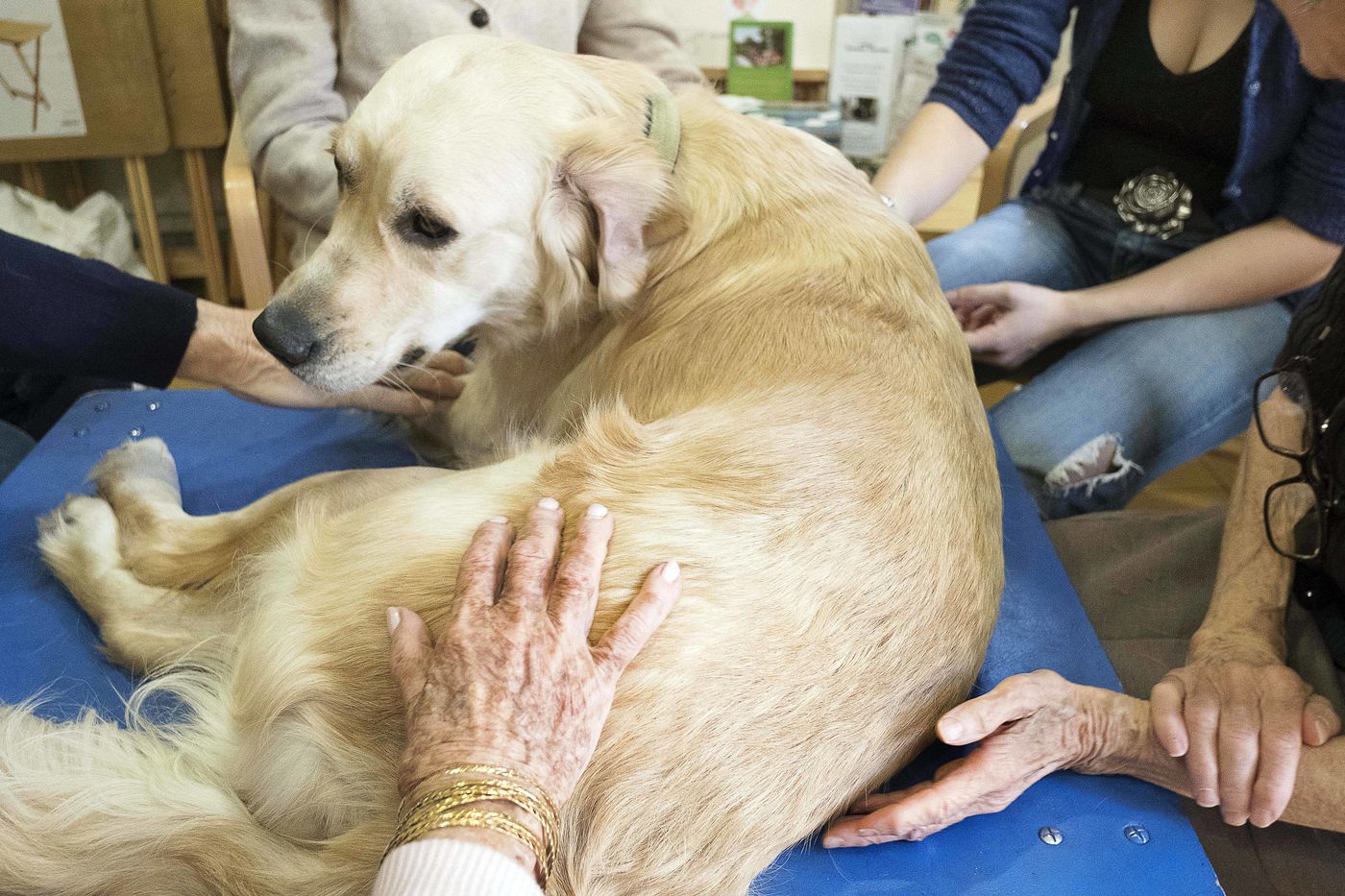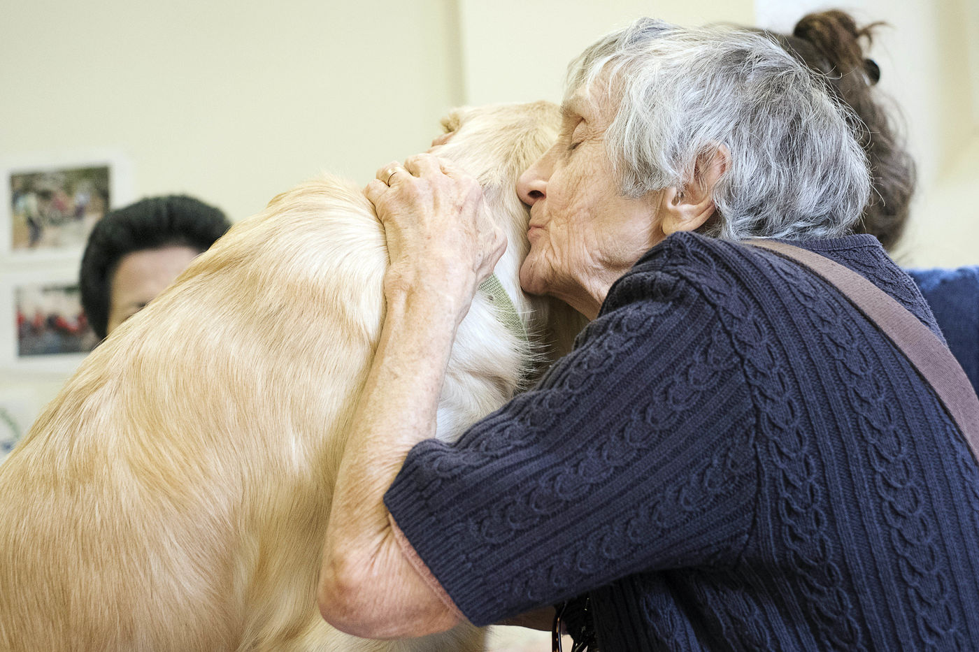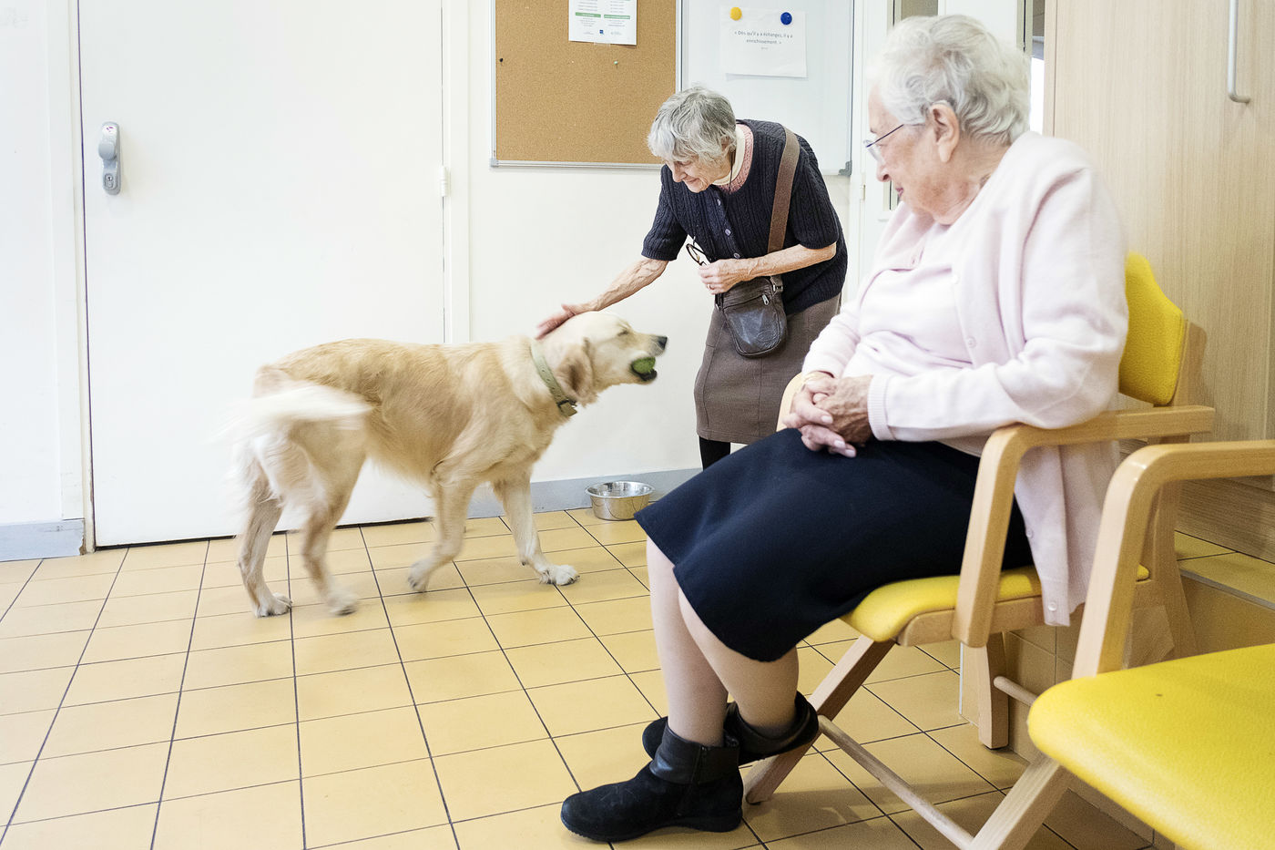 Atelier de zoothérapie avec la chienne Nova, dans la lutte contre la maladie d'Alzheimer.