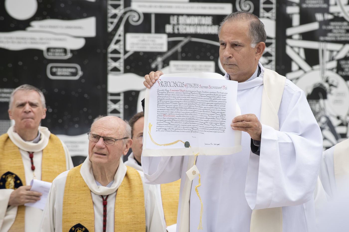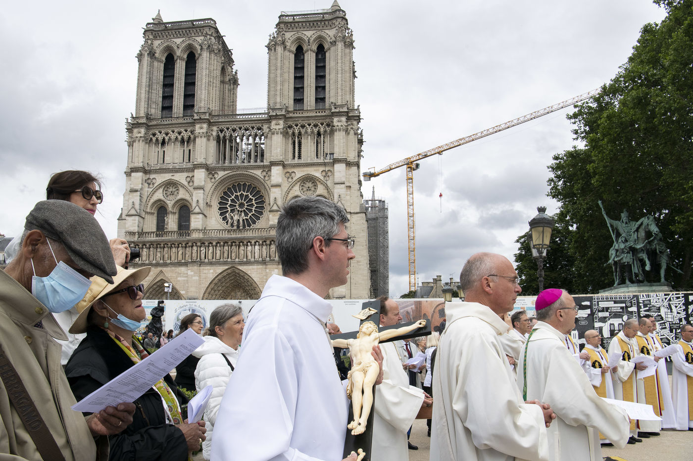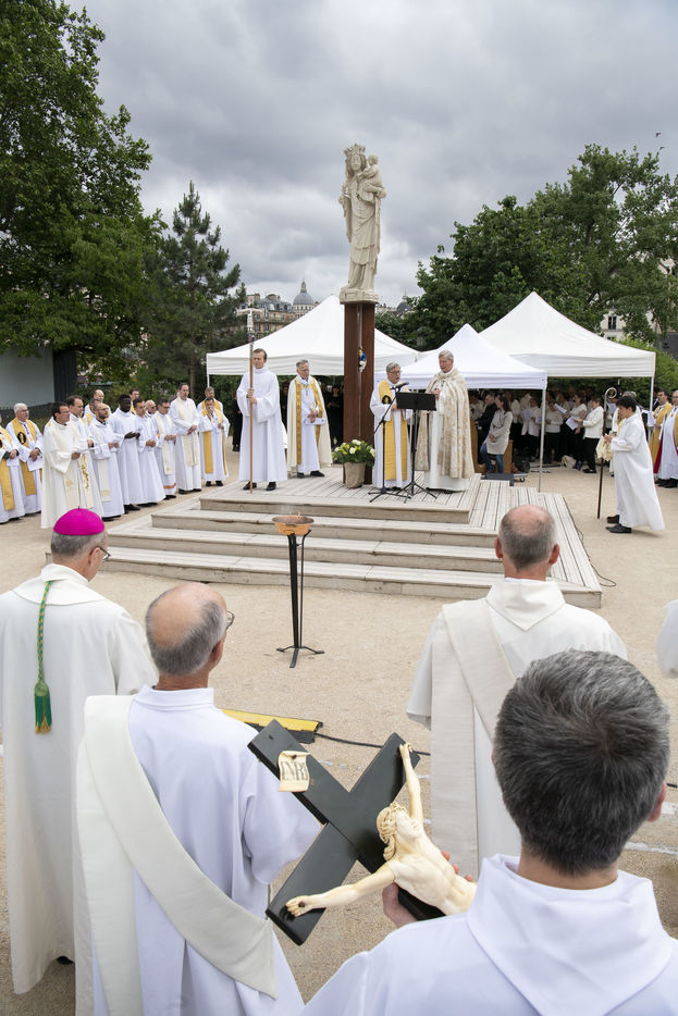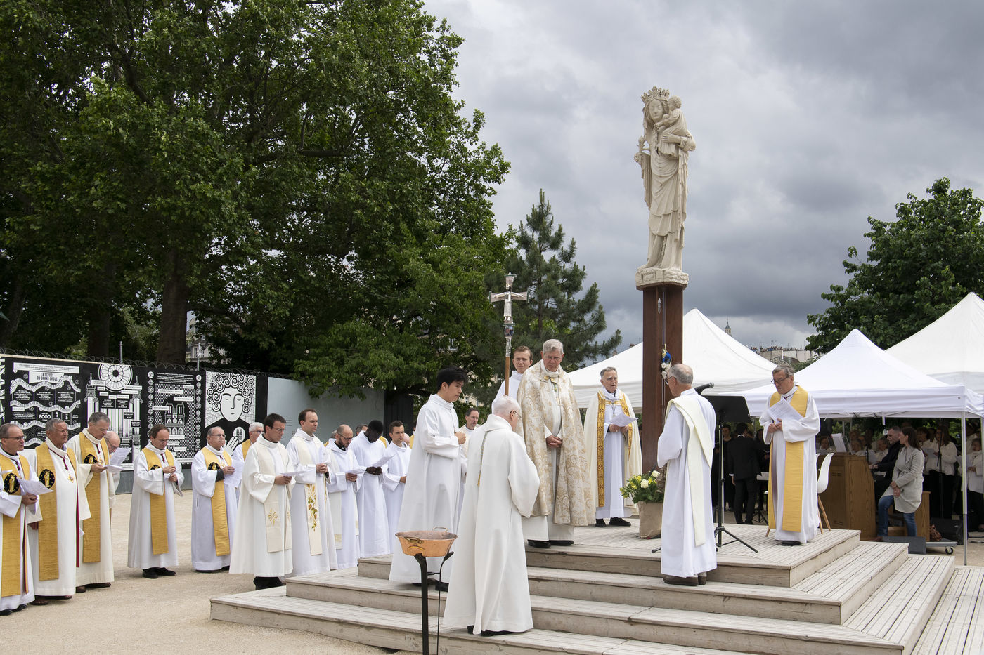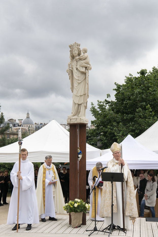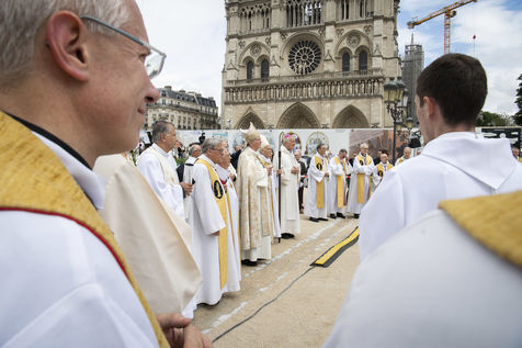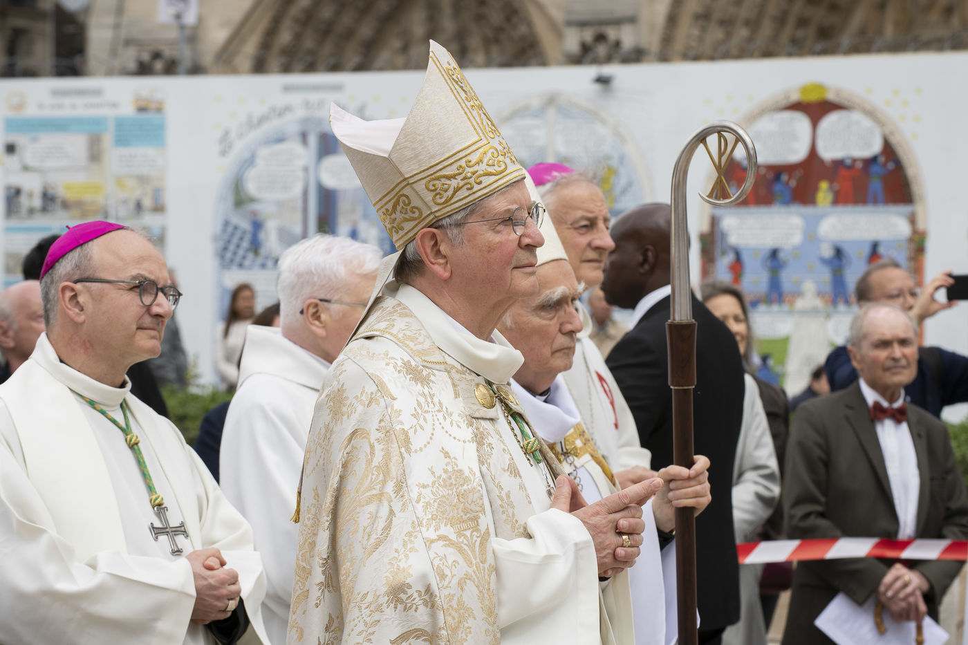 Welcome of Mgr Laurent Ulrich, new archbishop of Paris, on the square of the Notre-Dame cathedral.