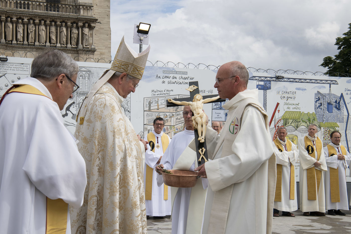 Accueil de Mgr Laurent Ulrich, nouvel archevêque de Paris, sur le parvis de la cathédrale Notre-Dame.
