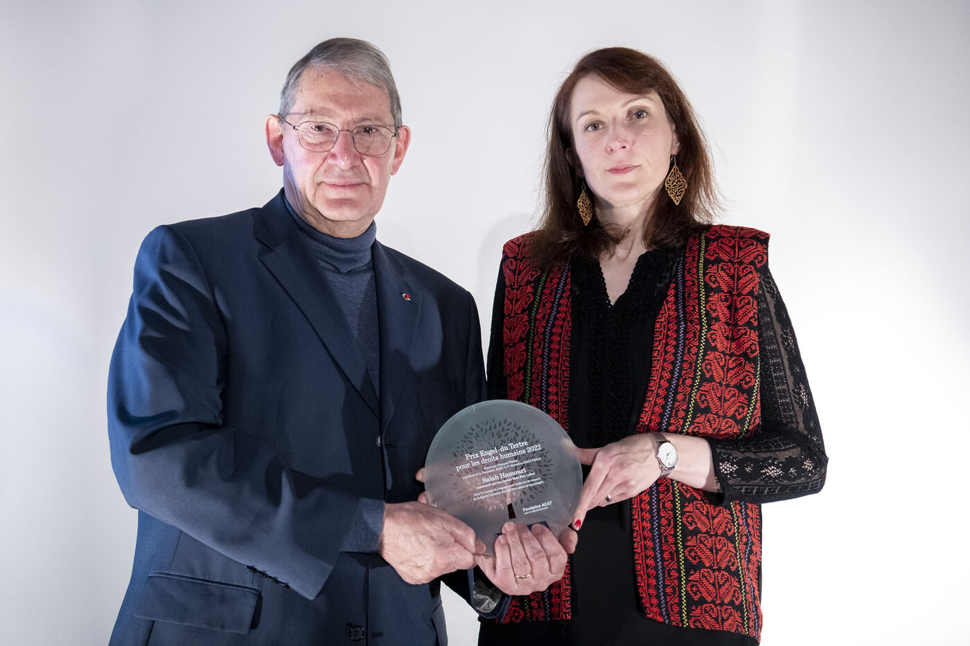 The ACAT Foundation for Human Dignity awards its Engel-du Tertre Human Rights Prize 2022 to Salah Hamouri for his commitment to human rights in Palestine. Currently in administrative detention, it is his wife Elsa Lefort who receives the award for her husband.