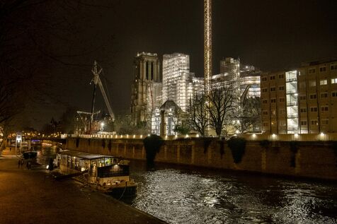 Restoration work of the Notre-Dame de Paris cathedral, night views.