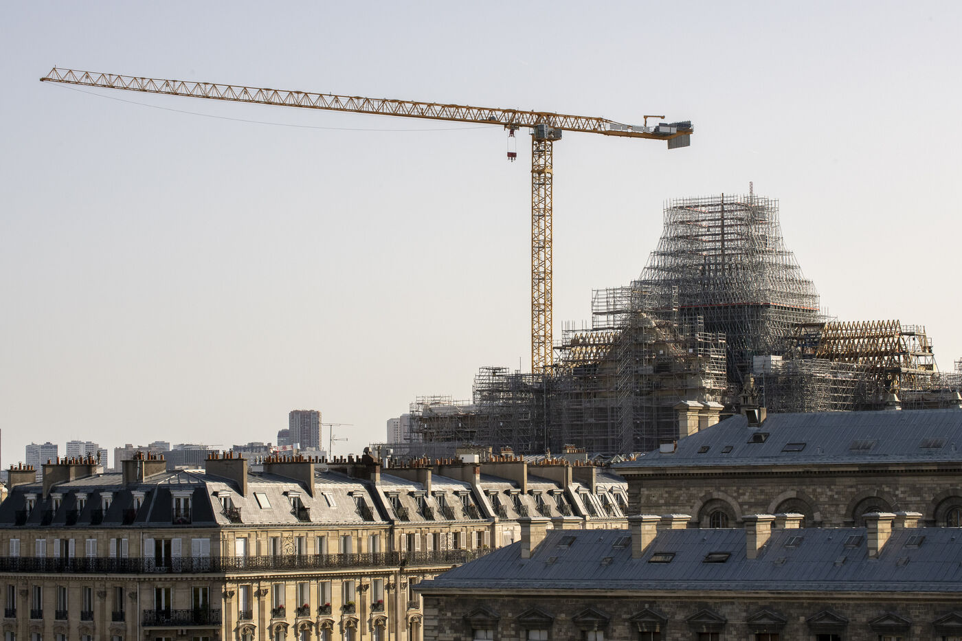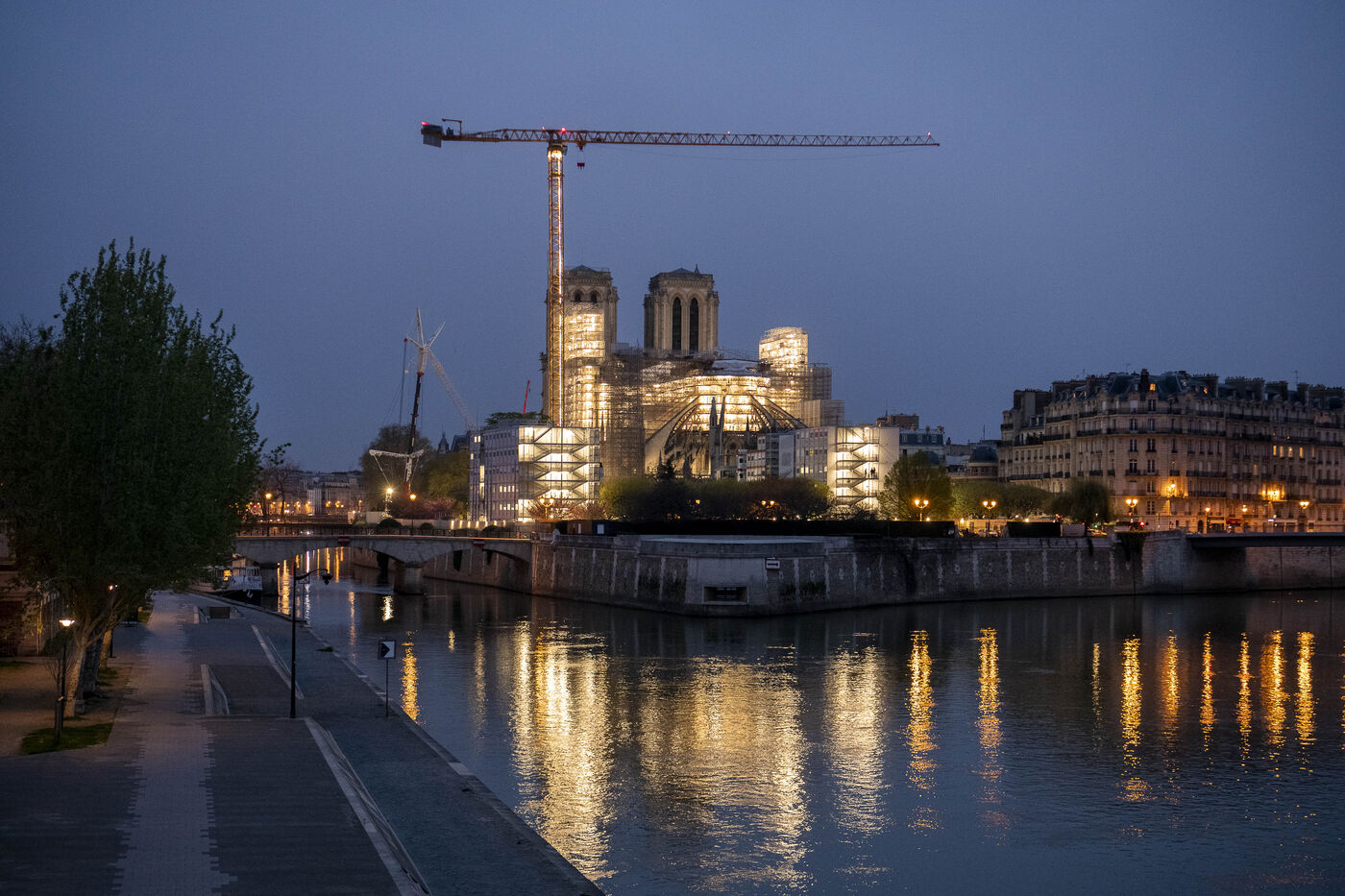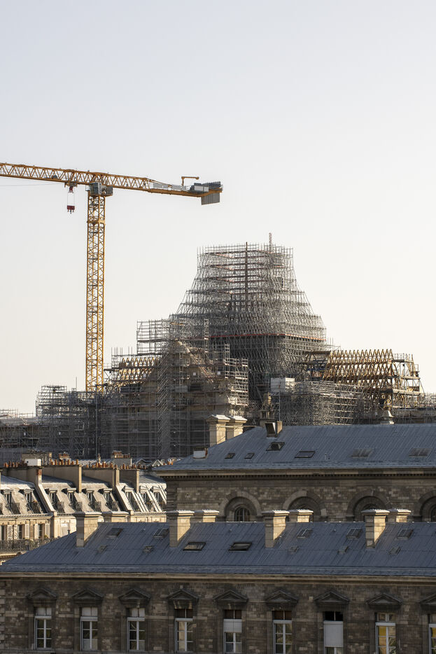 Travaux de restauration de la cathédrale Notre-Dame de Paris, vues de nuit.