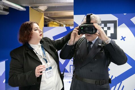 Inauguration of the exhibition-show "Eternal Notre-Dame" under the square of the cathedral Notre-Dame de Paris. Visitors live the immersive expedition in virtual reality.