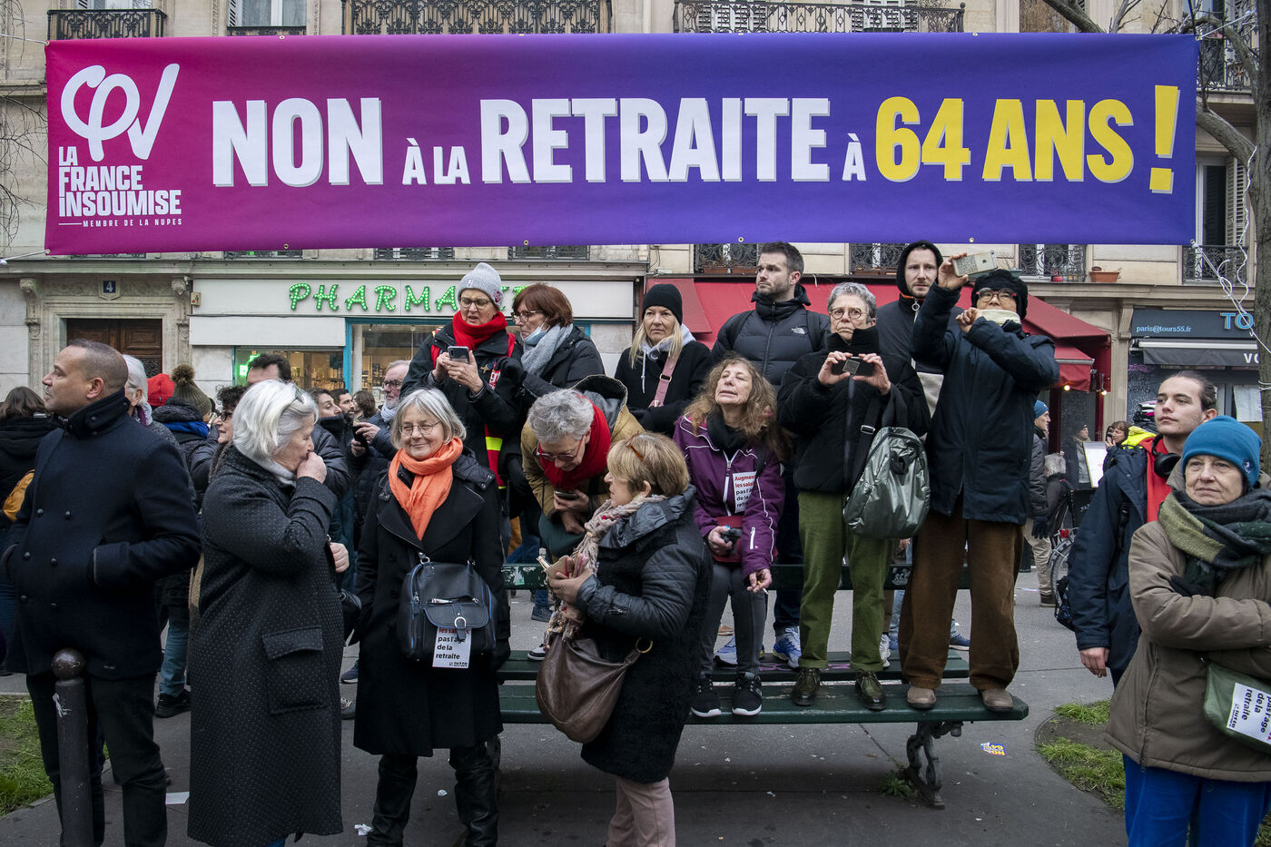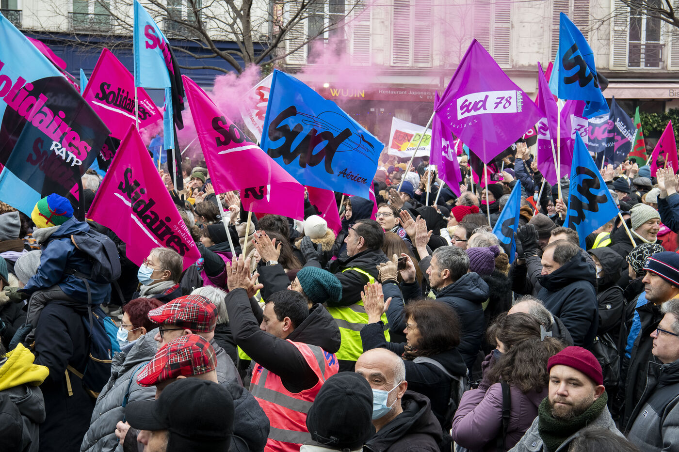 Demonstration against the pension reform. First day of mobilization against the announcement of the postponement of the legal retirement age to 64 years, presented by the Prime Minister Elisabeth Borne.