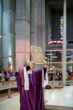 Mass celebrated by Mgr Jean-Luc Brunin at the Christian Entrepreneurs and Leaders Conference, in the Saint-Joseph church in Le Havre.