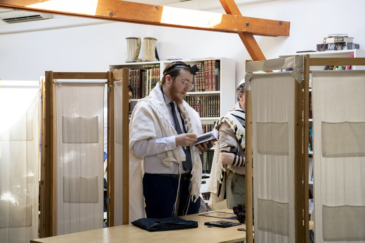 Morning service led by Rabbi Emile Ackermann at the Ayeka community. Ayeka is an Orthodox Jewish community open to the city (Torah Im Derekh Eretz), respectful of Jewish law (halakha) and secular French law, inclusive and vibrant.