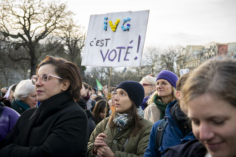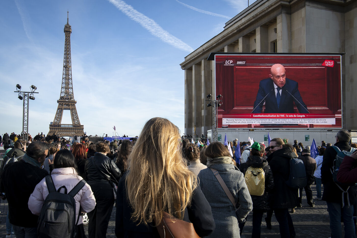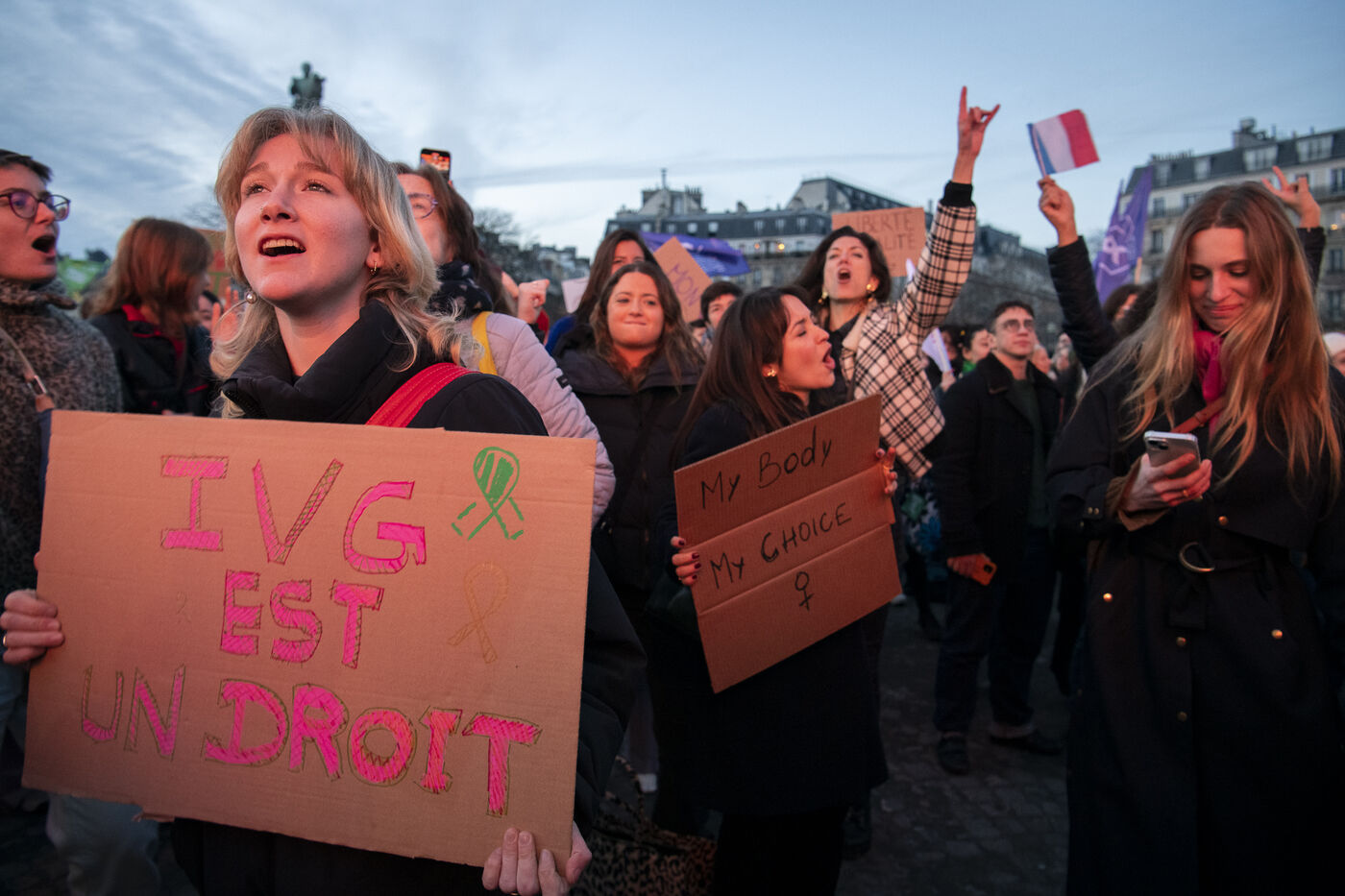 Rally at Place des droits de l'Homme to mark the vote by Congress to enshrine voluntary interruption of pregnancy (IVG) in the Constitution.