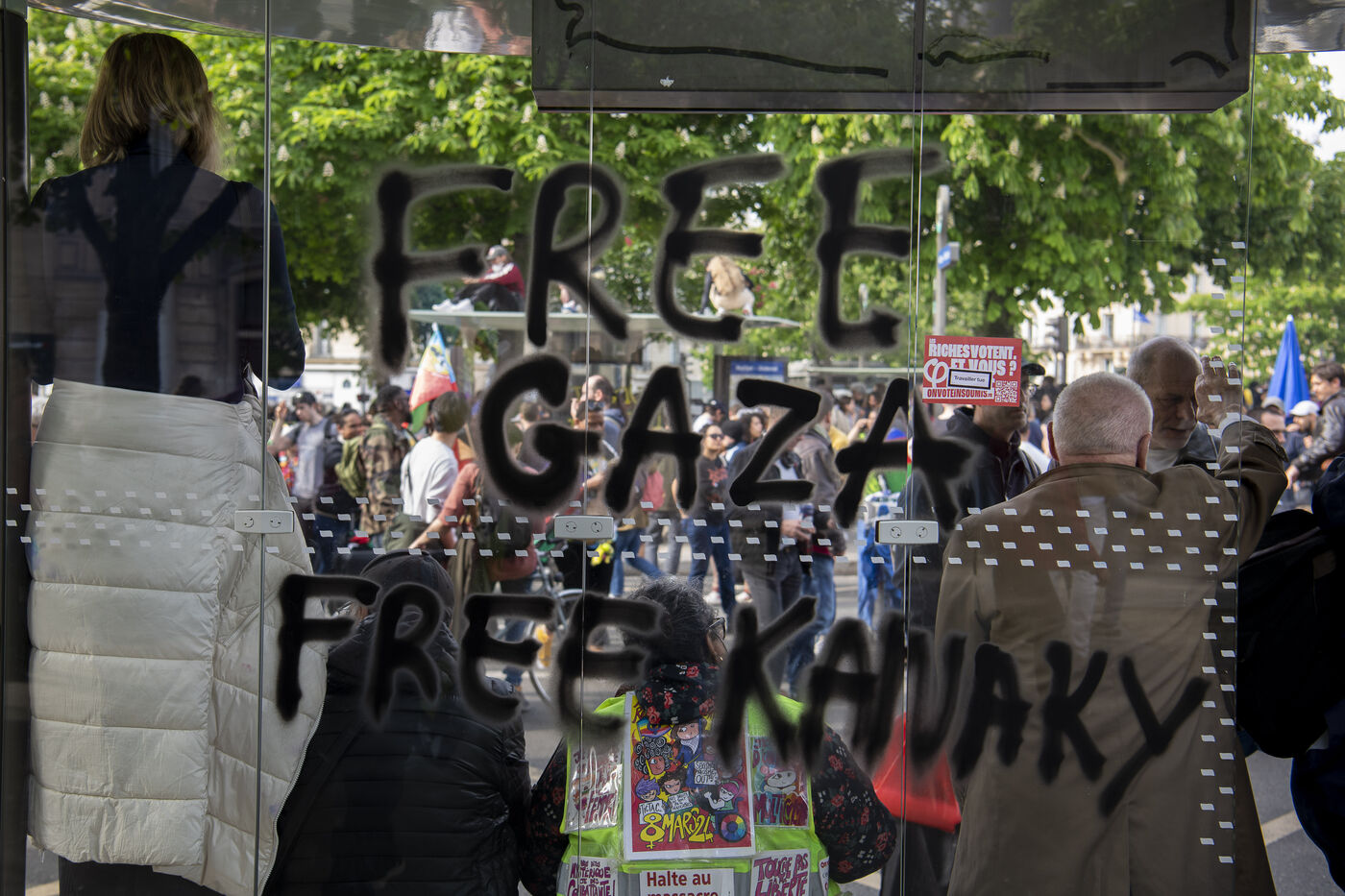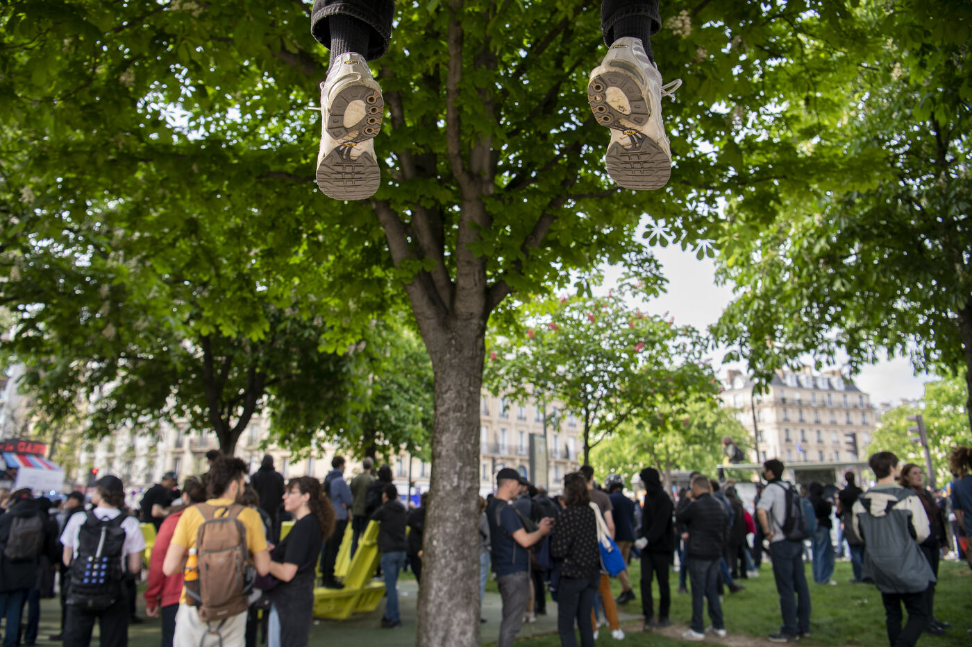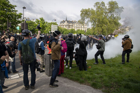 Manifestation, lors du défilé du 1er Mai, entre les places de la République et de la Nation.