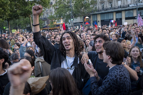 Elections législatives anticipées 2024. Résultats du second tour, scènes de liesse, place de la République