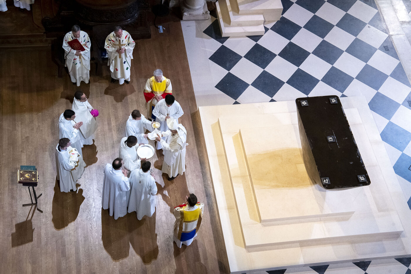 Cérémonie de réouverture de la cathédrale Notre-Dame de Paris. Messe de consécration inaugurale de l'autel