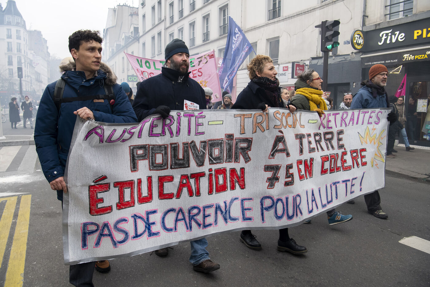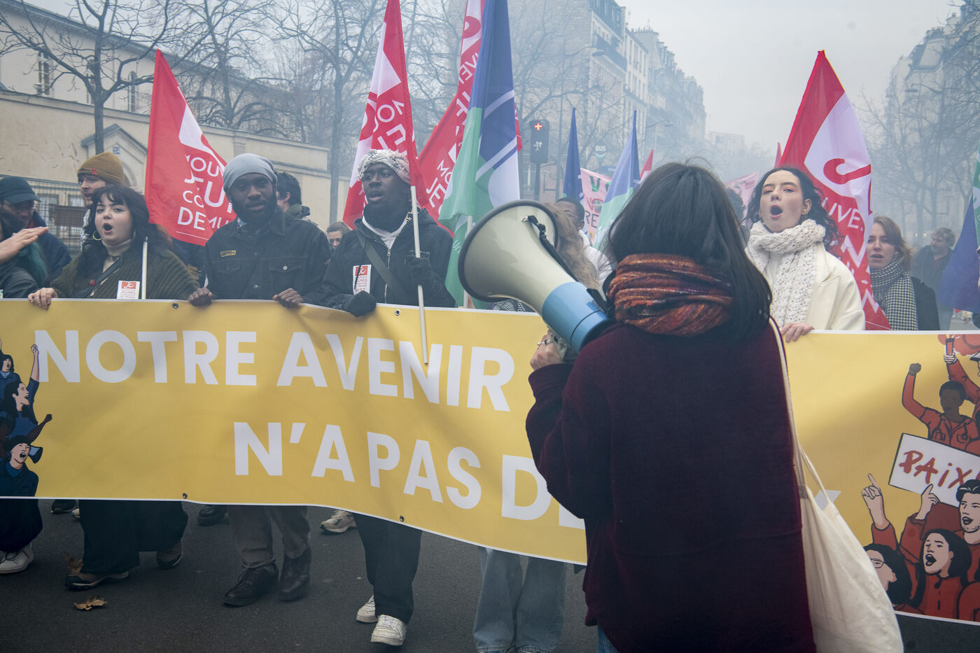 Manifestation à l'occasion d'une journée de grève. L'intersyndicale (FO-CGT-CNT-SUD-FSU-Unef) se mobilise pour la défense du service public