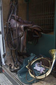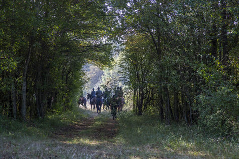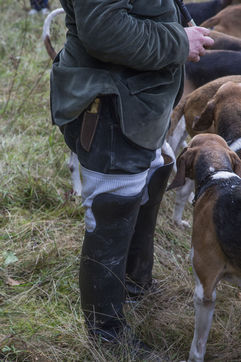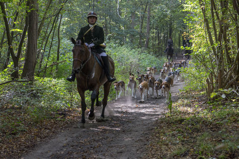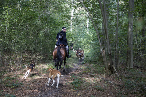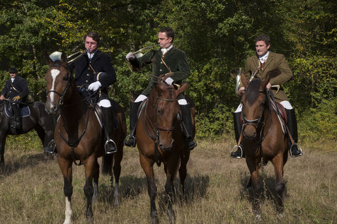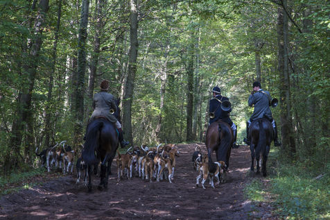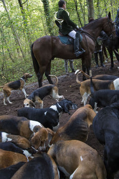 Hunting in the forest of Chantilly with about fifteen hunters of the Rallye Pic'Hardi Chantilly. They are accompanied by about twenty Anglo-French dogs trained to search for deer.