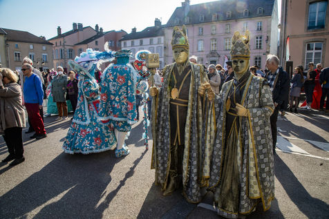 France, Remiremont, 2022-03-27. For 25 years, Venice has invited itself to Remiremont. For four days, the squares and streets of the city were invaded by 500 costumed characters, as in Venice, from all over France, Germany, Belgium, Switzerland.