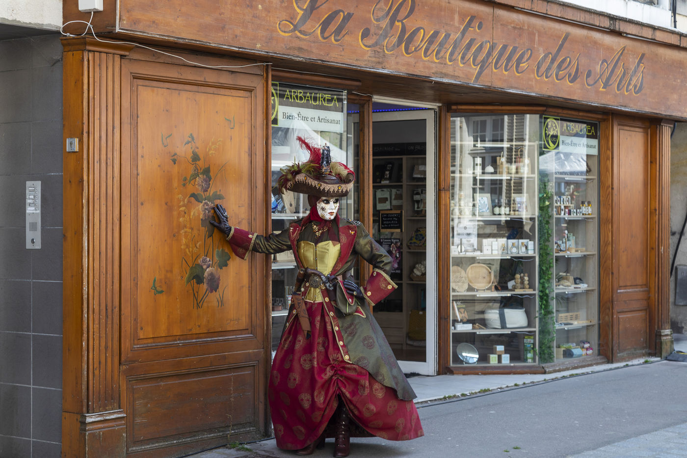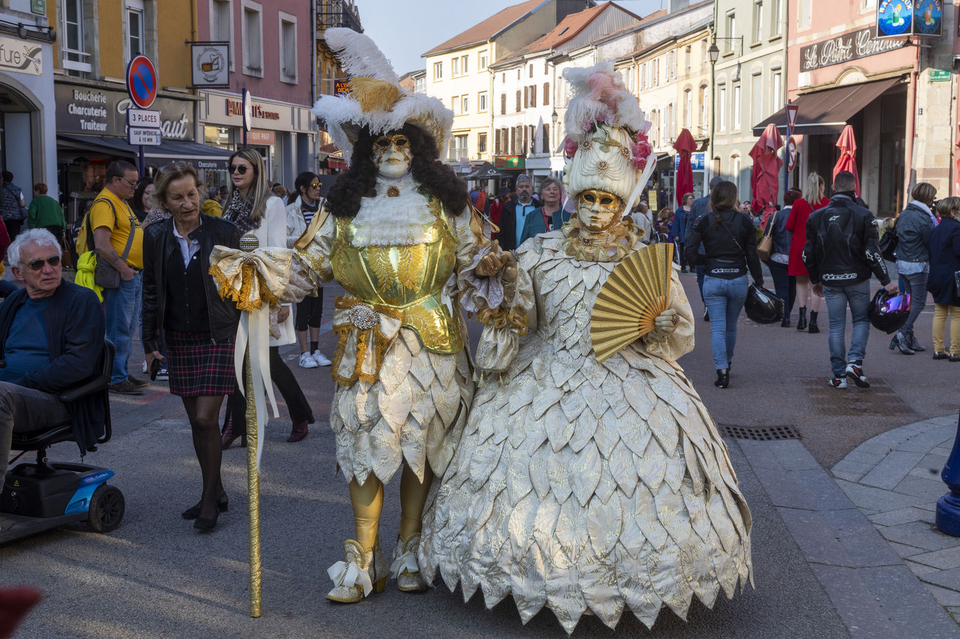 France, Remiremont, 2022-03-27. Depuis 25 ans, Venise s?invite à Remiremont. Pendant quatre jours, les places et rues de la ville ont été envahies par 500 personnages costume?s, comme à Venise, venus de partout en France, d?Allemagne, de Belgique, de Suisse.