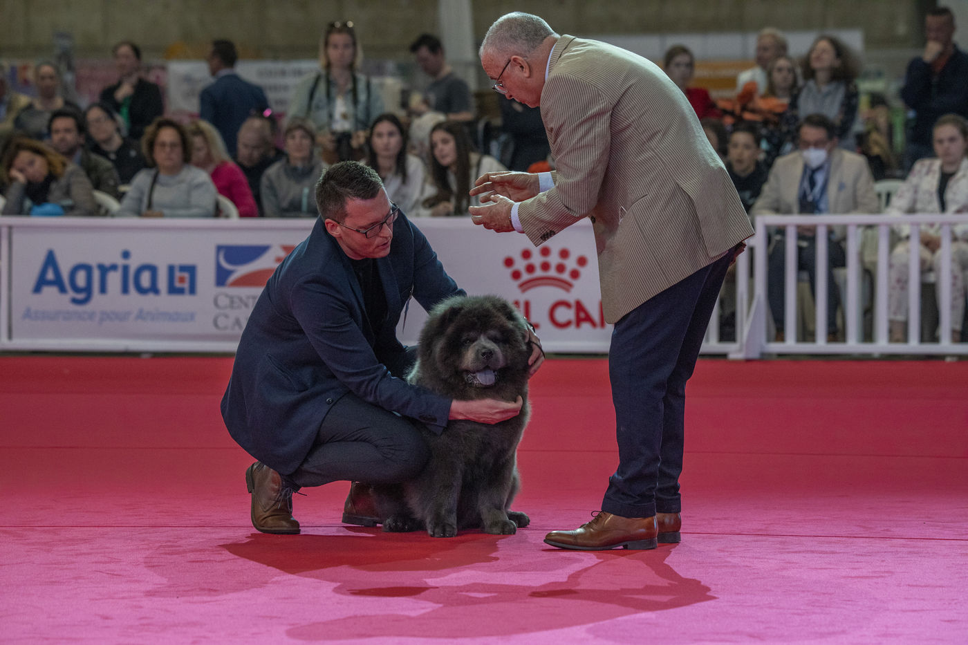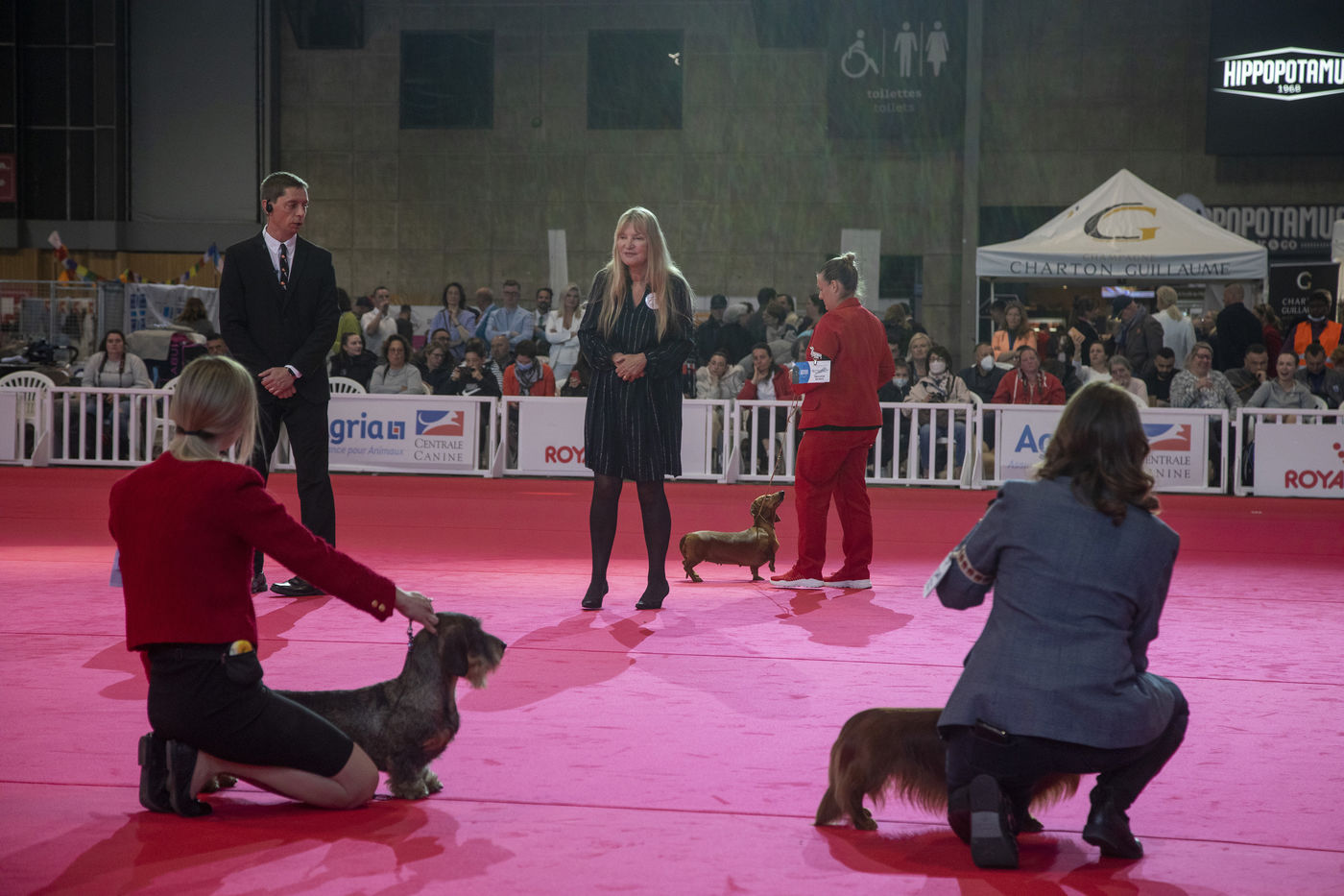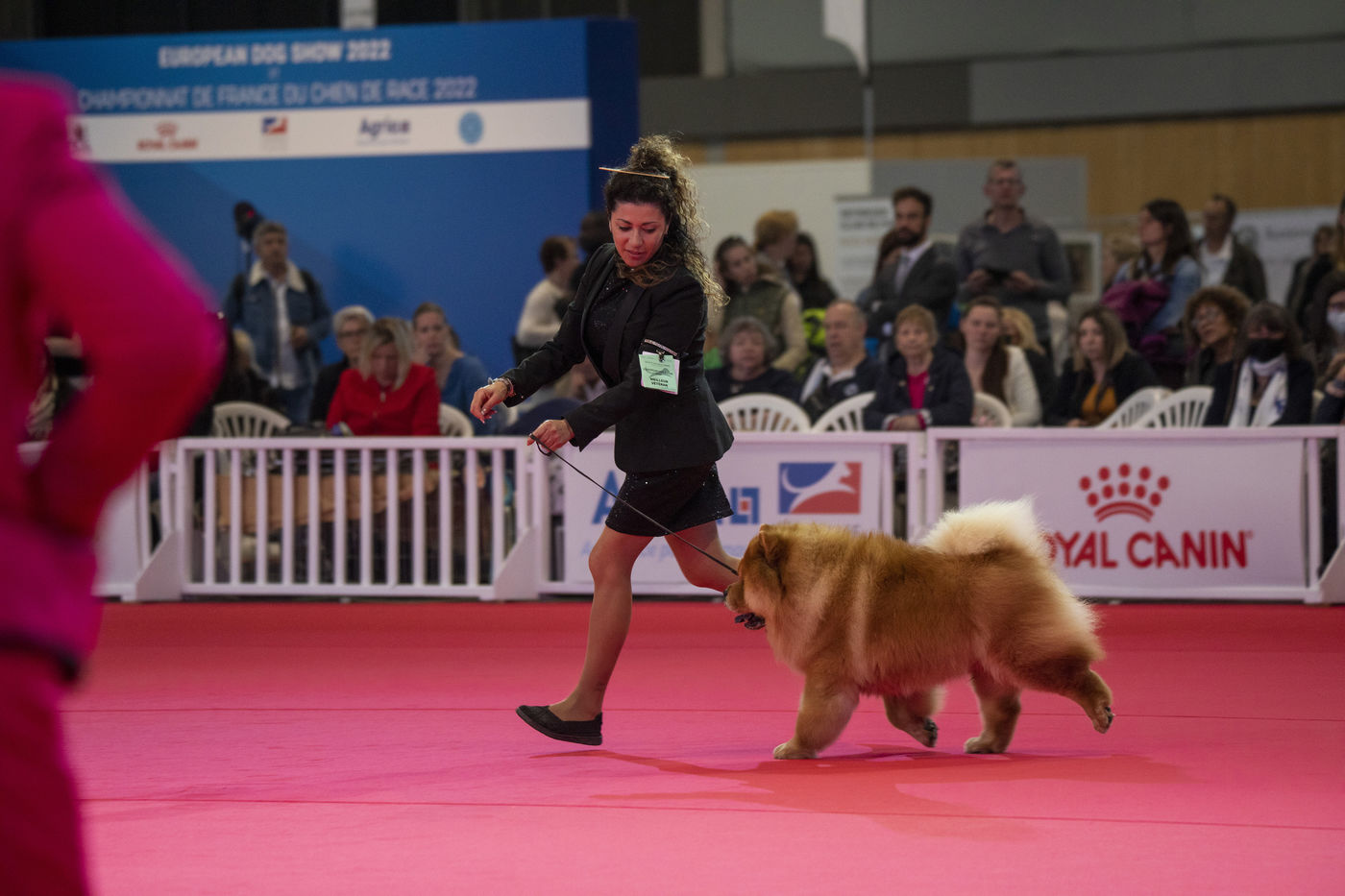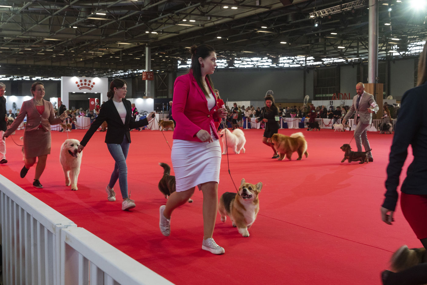 France, Villepinte, 2022-04-22. Le championnat d'Europe et de France des chiens de race a démarré pour trois jours au Parc des expositions Paris-Nord Villepinte, organisé par la Société Centrale Canine. Plus de 18 000 chiens provenant de 280 races y participent, présentés sur 70 rings avec des finales des « Best of » sur un ring d'honneur. Photographie par Caroline Paux