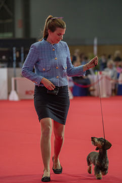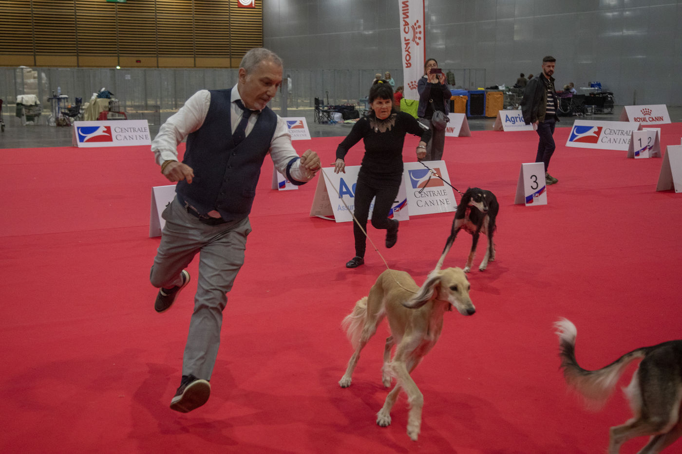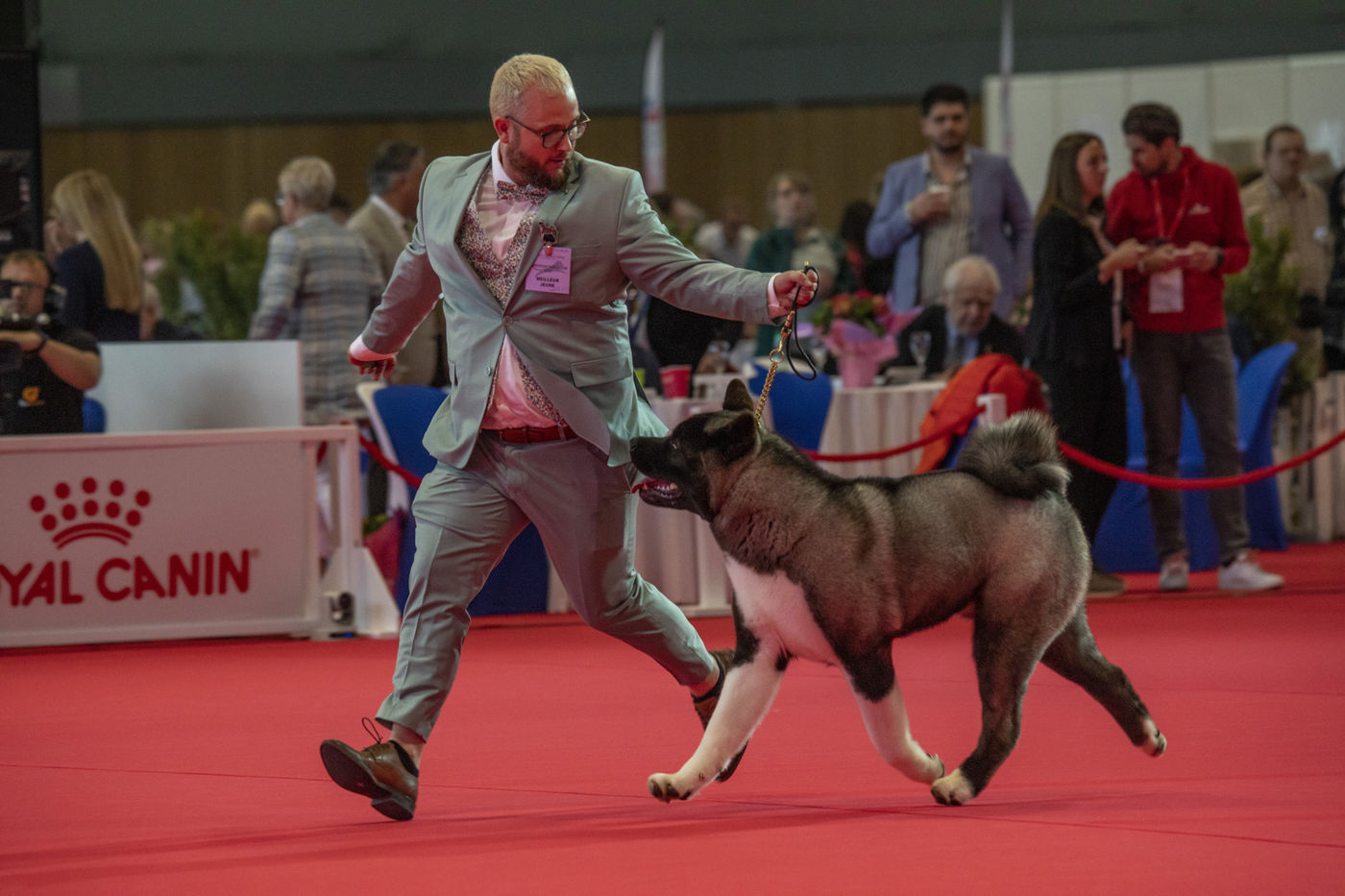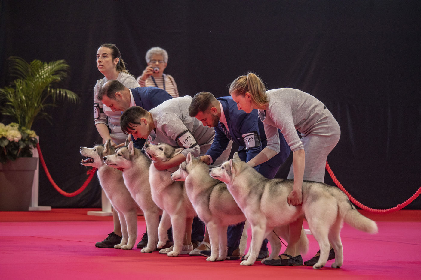 France, Villepinte, 2022-04-22. Le championnat d'Europe et de France des chiens de race a démarré pour trois jours au Parc des expositions Paris-Nord Villepinte, organisé par la Société Centrale Canine. Plus de 18 000 chiens provenant de 280 races y participent, présentés sur 70 rings avec des finales des « Best of » sur un ring d'honneur. Photographie par Caroline Paux