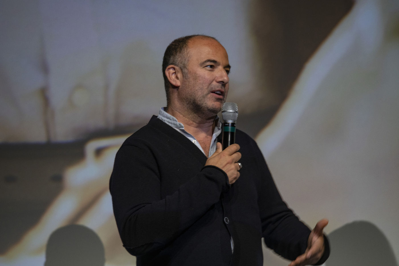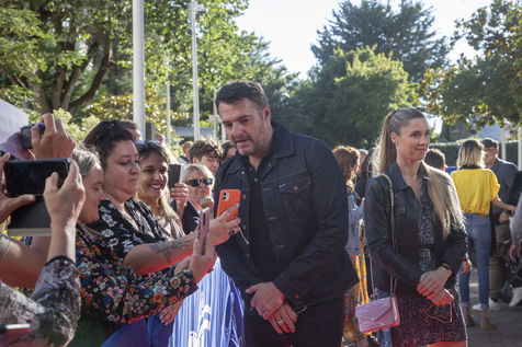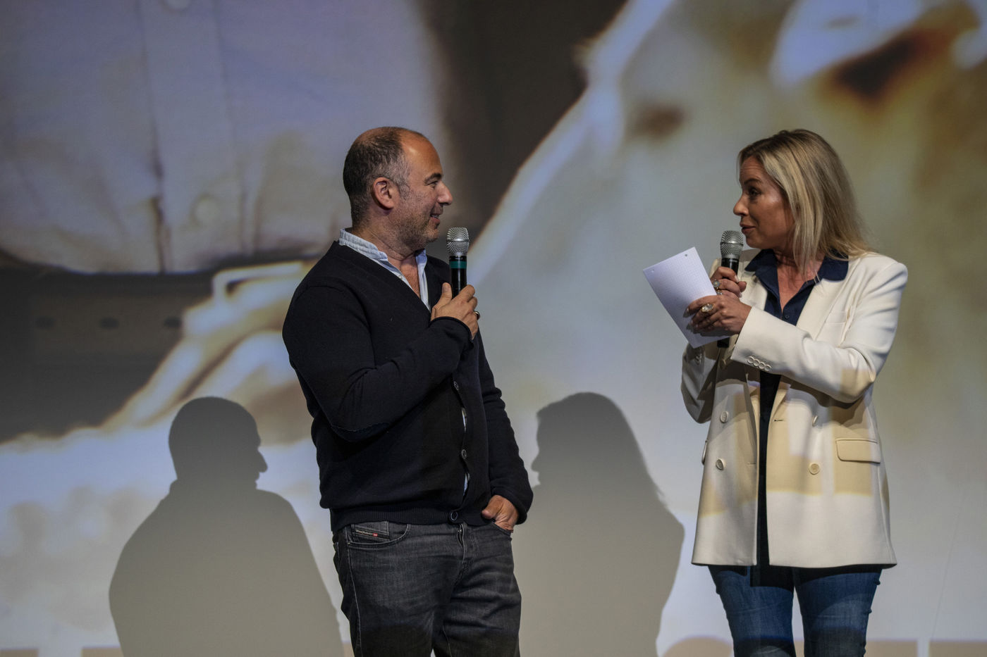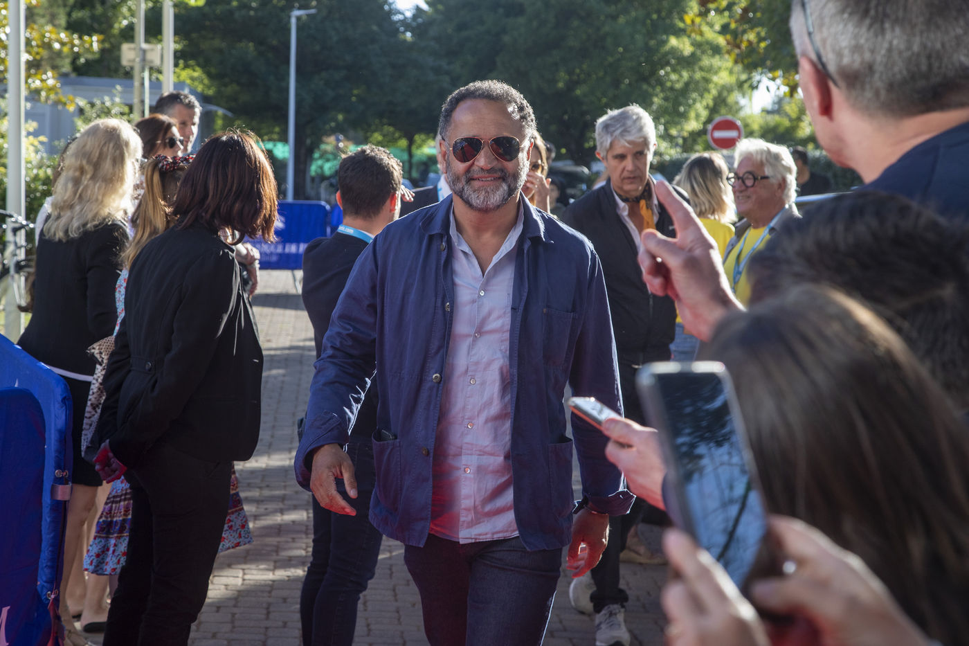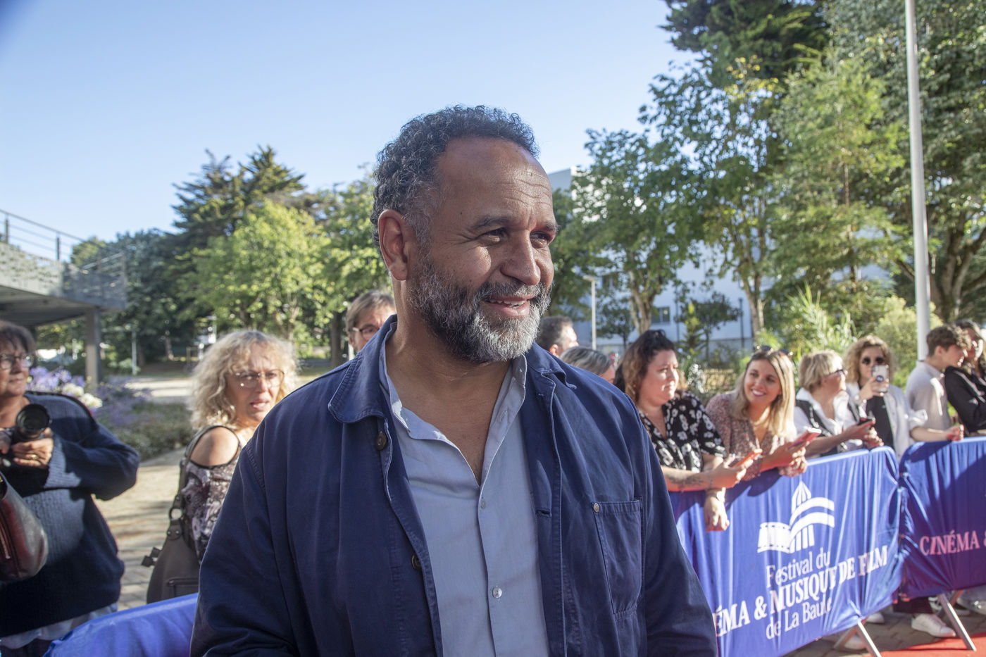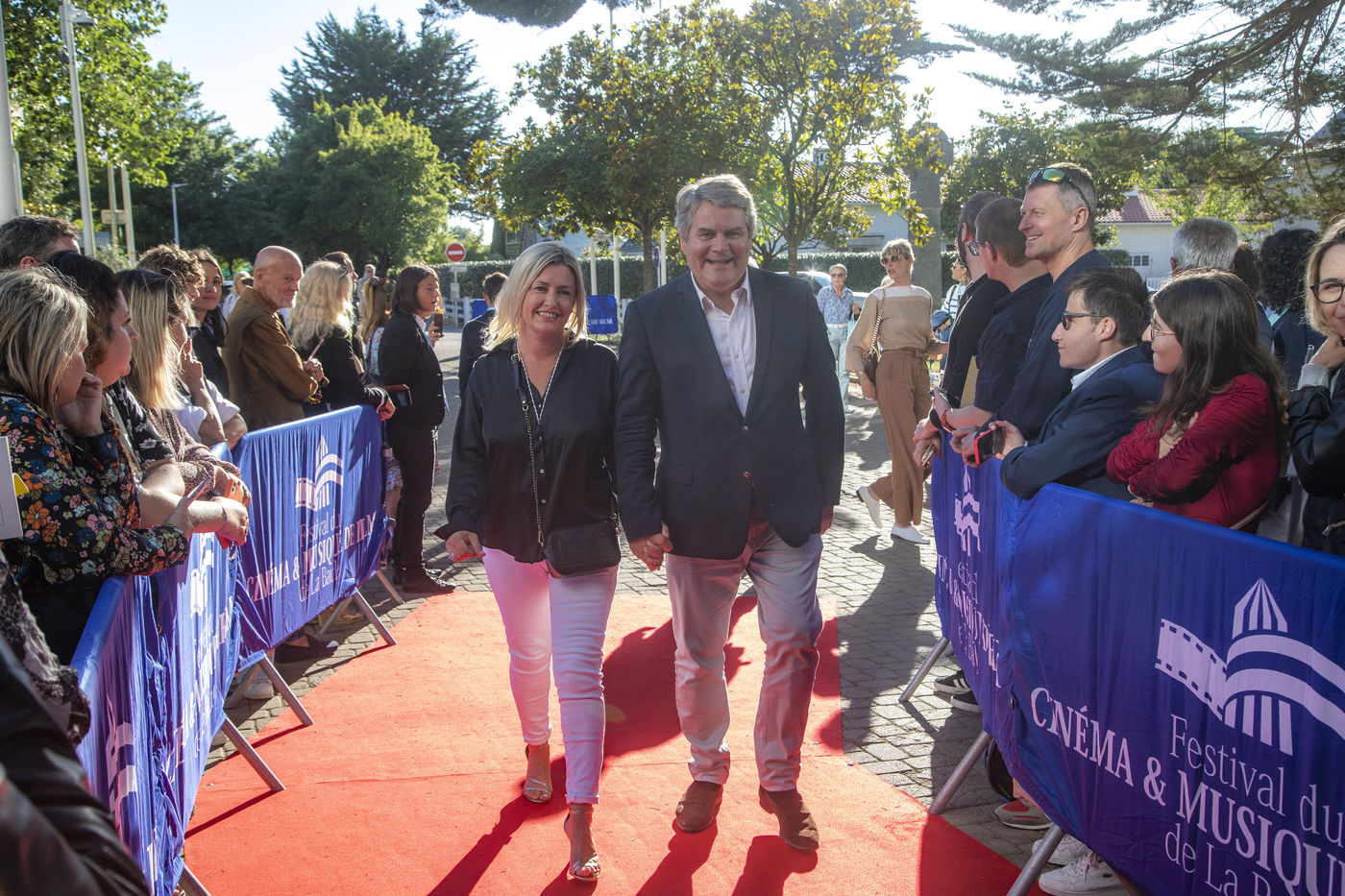 France, La Baule, 2022-07-01. Chaque soir, le Festival du cinéma & musique de film de La Baule présente un film en compétition ou hors compétition dans la salle des congrès Atlantia. Jeudi, c?était « Citoyen d?honneur », en présence du réalisateur Mohamed Hamidi, de la jeune chanteuse Vanille Clerc, de la réalisatrice Nafsika Guerry-Karamaounas. Vendredi, projection de « Rumba la vie » de Franck Dubosc, en présence de Tcheky Karyo, de Dominique Desseigne, pdg du Groupe Barrière, Arnaud Ducret, de Pierre Menes, de l?équipe du film Petaouchnok, Edouard Deluc, Philippe Rebot, Sami Ameziane. Photographie par Caroline Paux / Hans Lucas