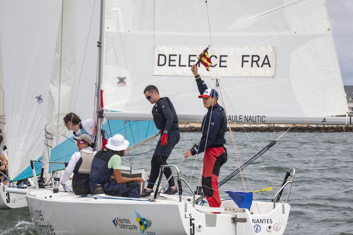 France, Pornichet, 2023-07-31 - Les internationaux de voile Match Racing, étape du World Tour, organisés à Pornichet du 27 au 30 juillet par l?APCC voile sportive, ont accueilli dix équipages dont huit font partie du Top 35 mondial, venus de France, Grande-Bretagne, Espagne, États-Unis et Estonie. Le favori, Damien Michelet, a remporté l?épreuve, en devançant Ange Delerce, en finale. Tous deux avaient éliminé Ian Garetta et Tom Foucher en demi-finales. Photographie par Caroline Paux / Hans Lucas.