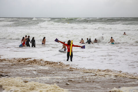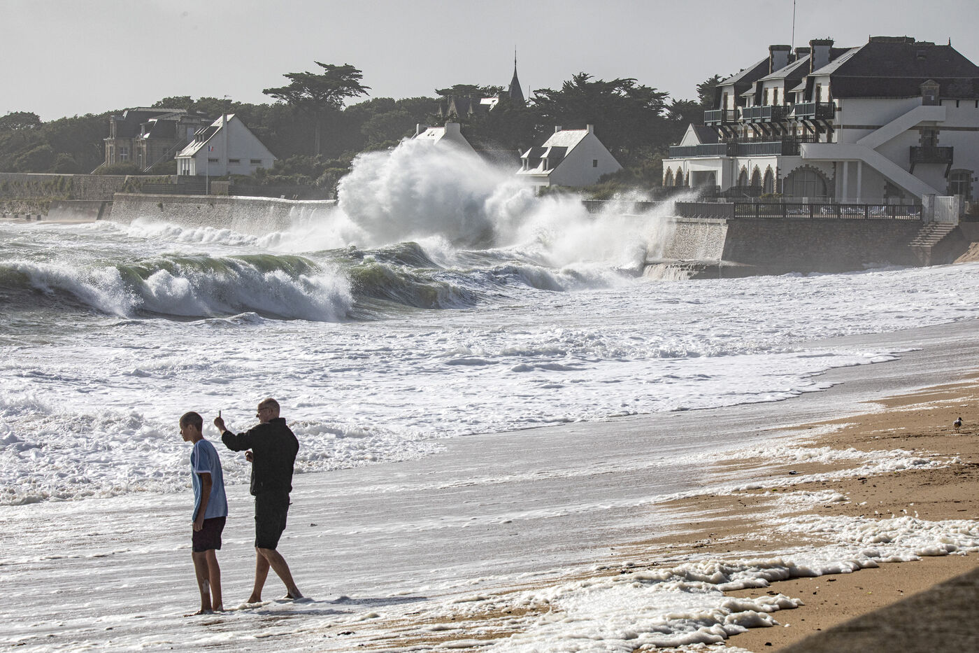 France, Batz-sur-Mer - 2023-08-03. Storm Patricia in northwestern France had repercussions in the Loire-Atlantique region, with very high swells and wind, particularly on the Côte sauvage from Batz-sur-Mer to Le Croisic. Photo Caroline Paux / Hans Lucas.