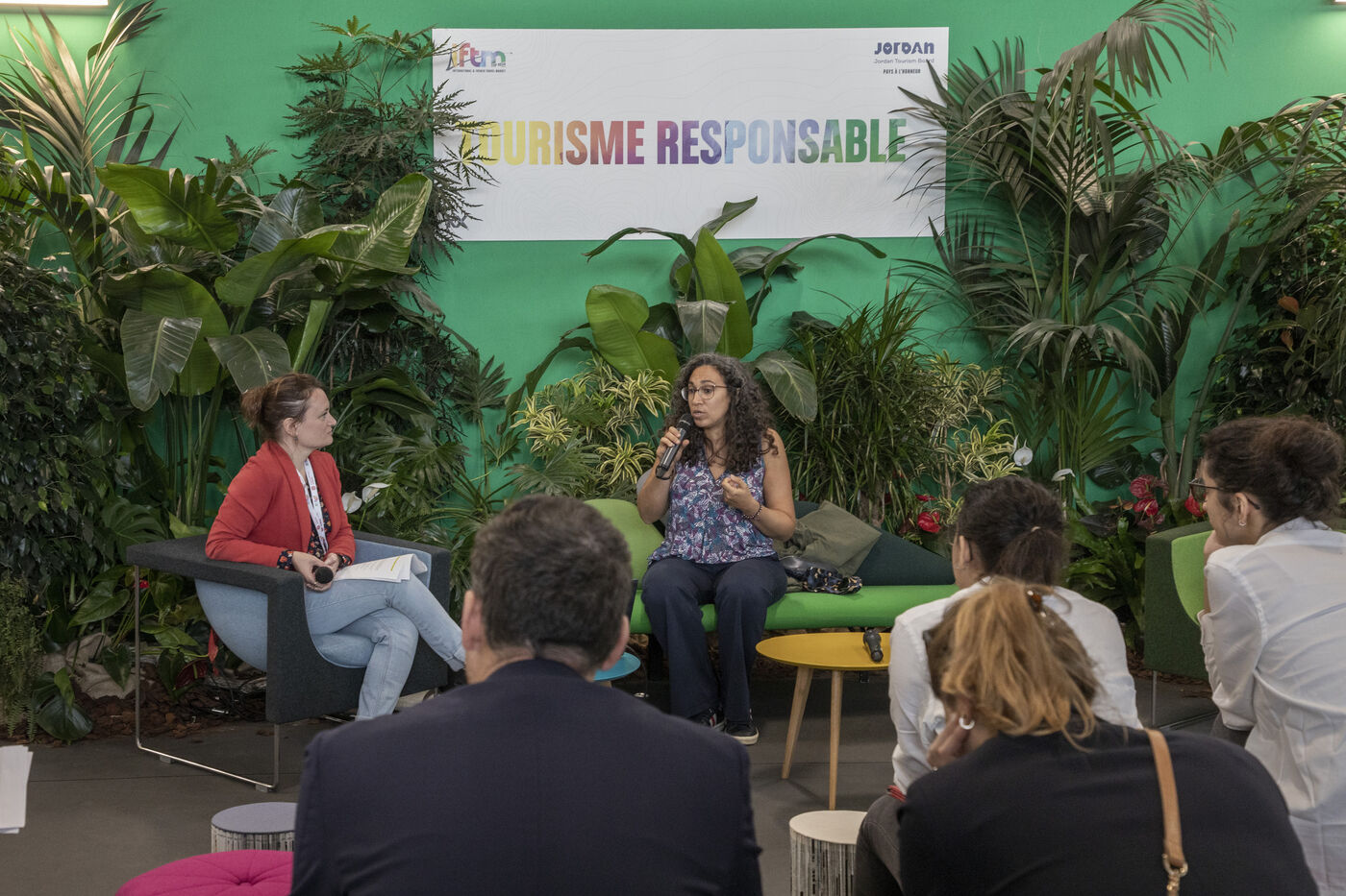 France, Paris, 2023-10-04. The 45th edition of IFTM Top Résa, International & French travel Market, the trade show for all tourism professionals in France, opened its doors on October 3 and will run until October 5 at Paris - Porte de Versailles, with the theme "Challenges and resilience". 200 destinations and 1,700 brands are represented, including Jordan, the country of honor for this 2023 edition. Over 34,000 visitors are expected. Photograph by Caroline Paux / Hans Lucas.