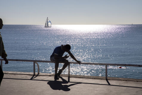 France, Nice, 18 november 2023. Tourism. On this November weekend, Nice, from the Promenade des Anglais to the Port, is an intoxicating mix of sun-drenched pebble beaches, sparkling azure waters and the relaxed atmosphere of the French Riviera. The famous Promenade des Anglais invites the many Nicois and tourists alike to stroll along the shore, offering breathtaking views of the Mediterranean. Photo Caroline Paux / Hans Lucas.