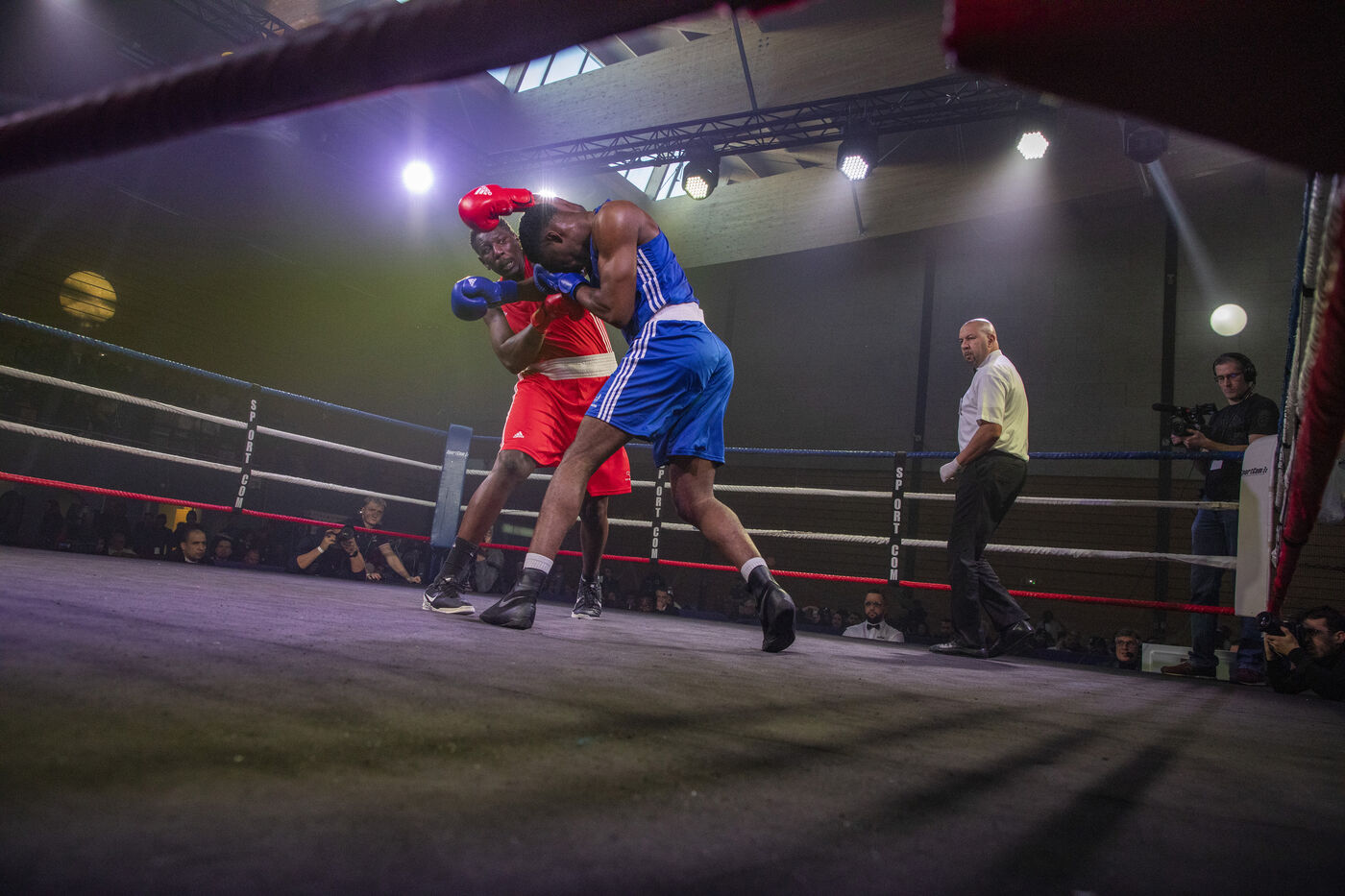 France, Deuil-La Barre, December 16, 2023. 22 3-round bouts, held at the Alain Mimoun sports complex in Deuil-la Barre, designated the French elite boxing champions for men in categories ranging from 50 to +92 kg. Twelve French clubs were represented. Photography by Caroline Paux / Hans Lucas.