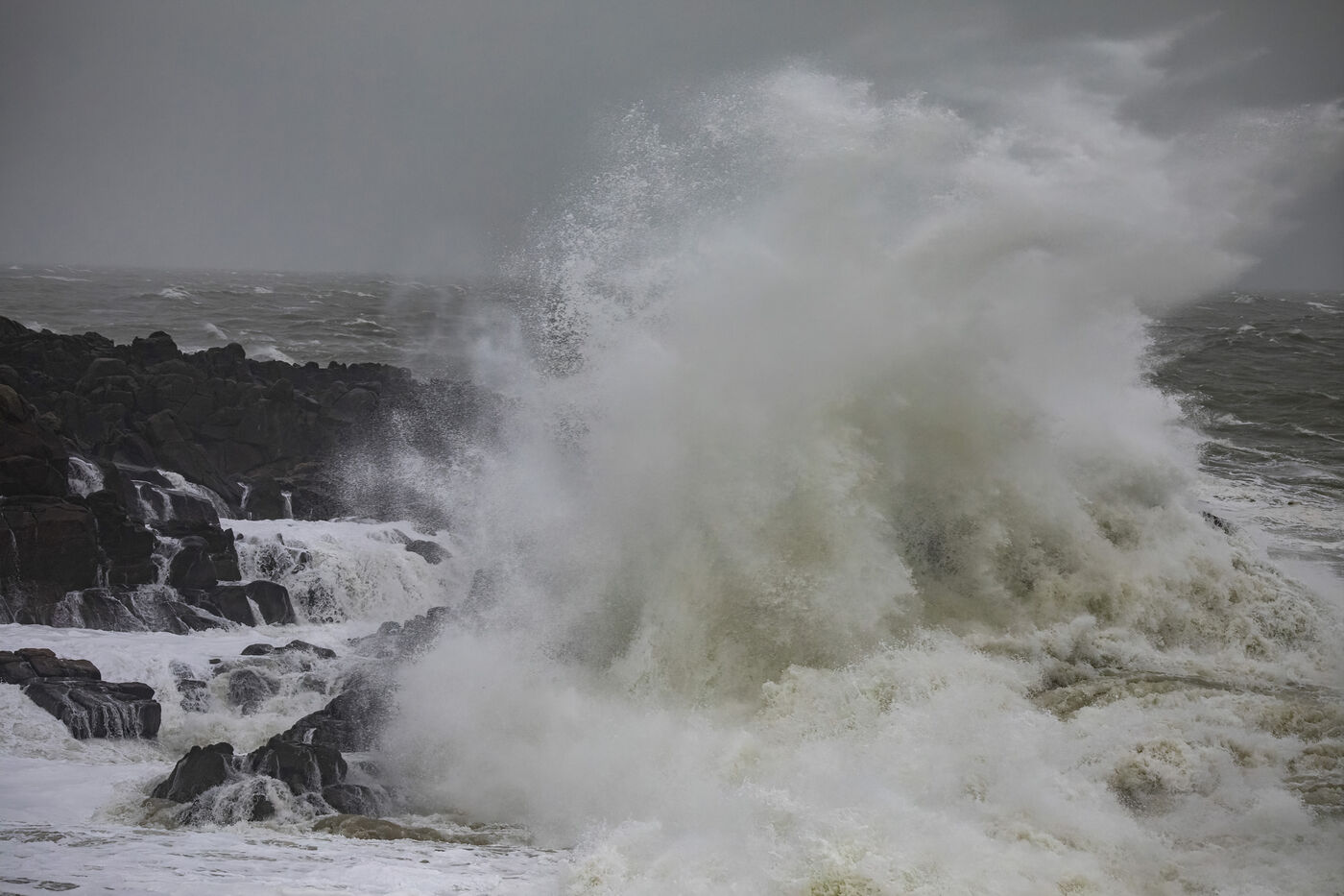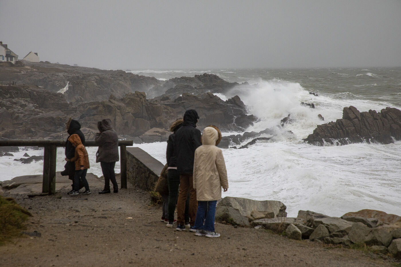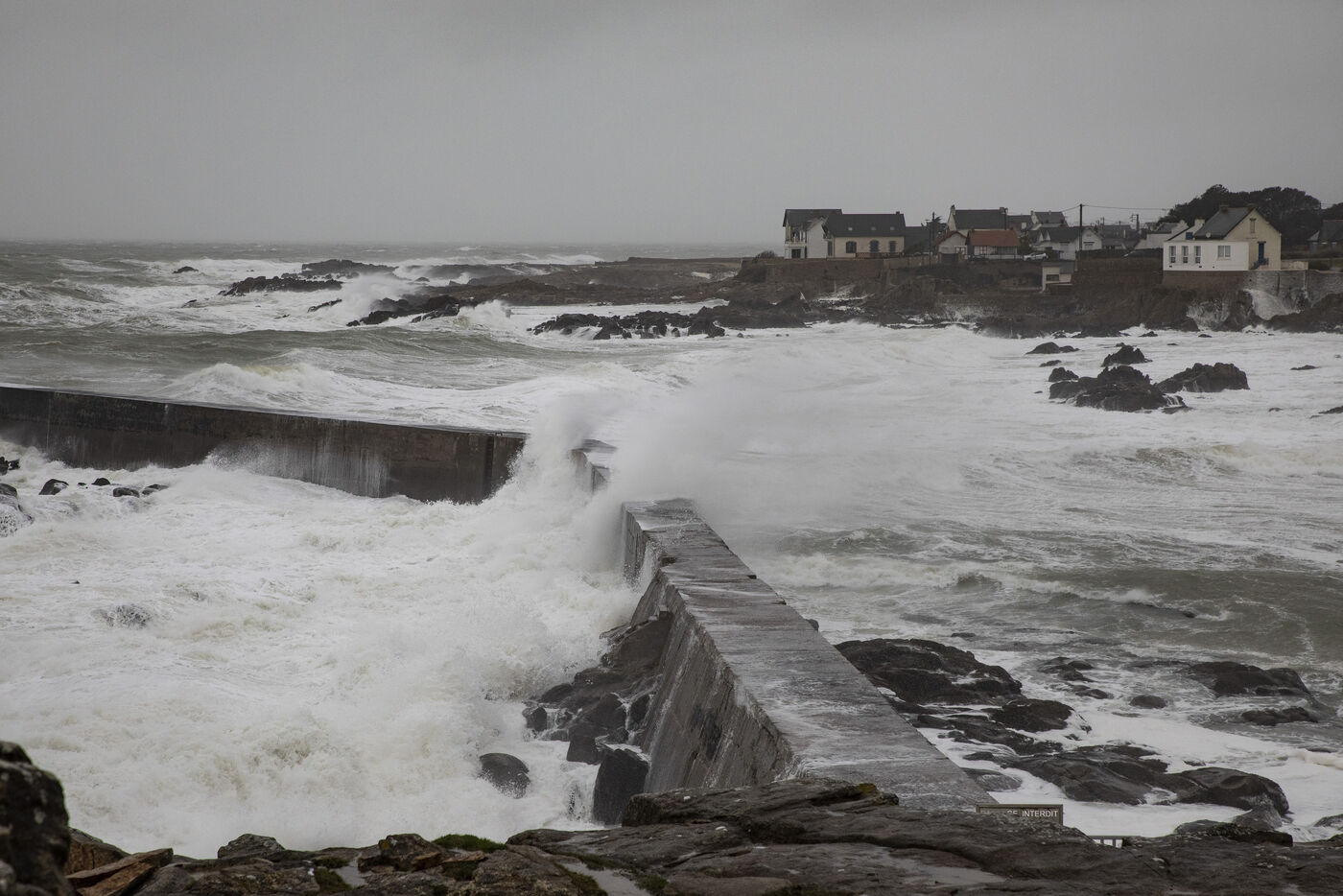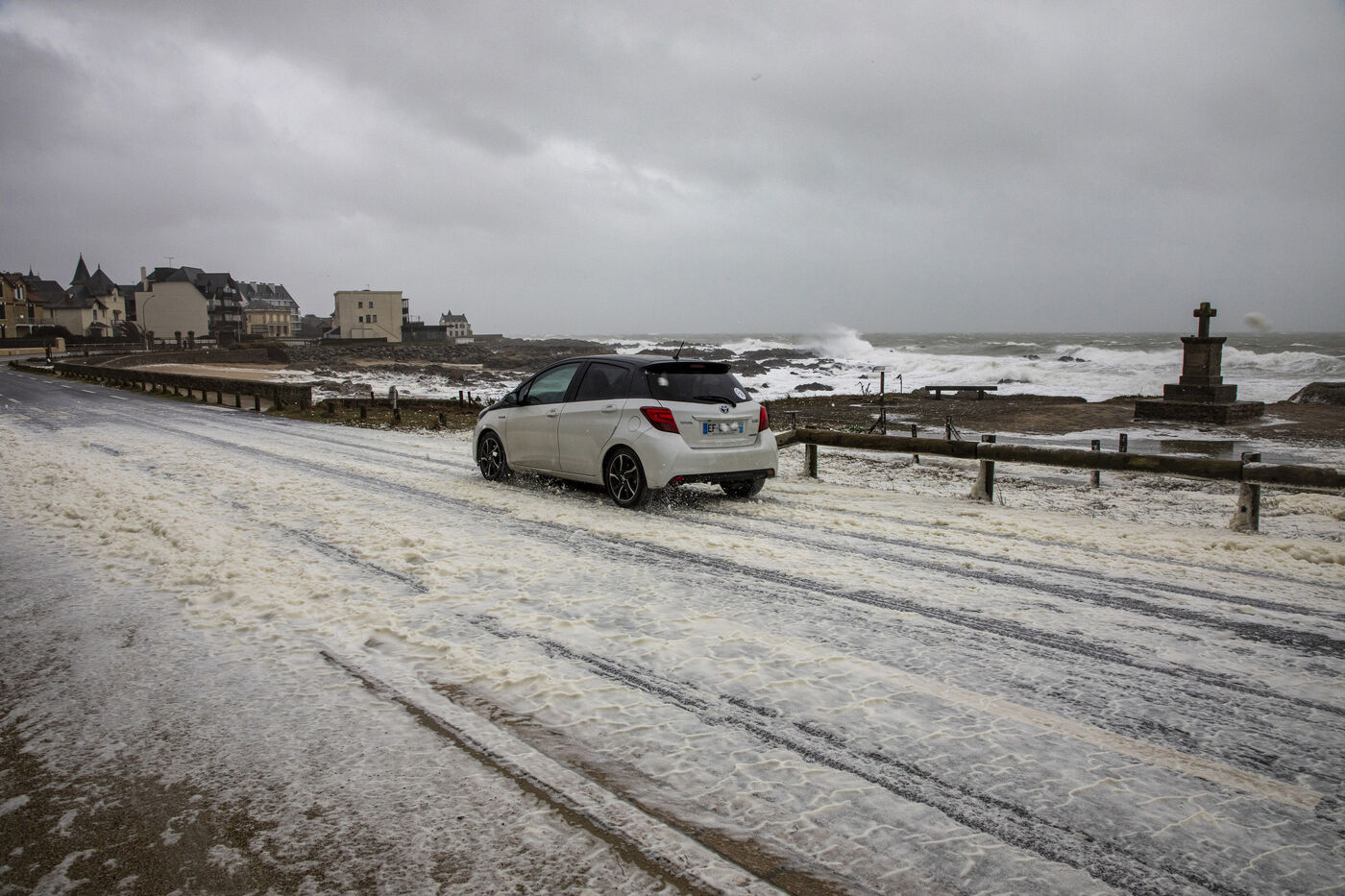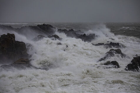 France, Batz-sur-Mer, January 2, 2024. With heavy swells, rain and strong winds, the west coast is experiencing a variety of storms, as in Loire-Atlantique, which has been placed under orange alert, particularly in Batz-sur-Mer and Le Croisic. Photography by Caroline Paux/Hans Lucas.