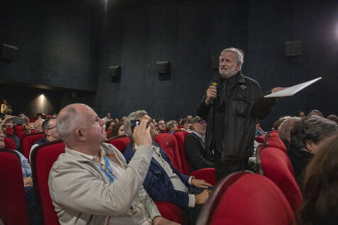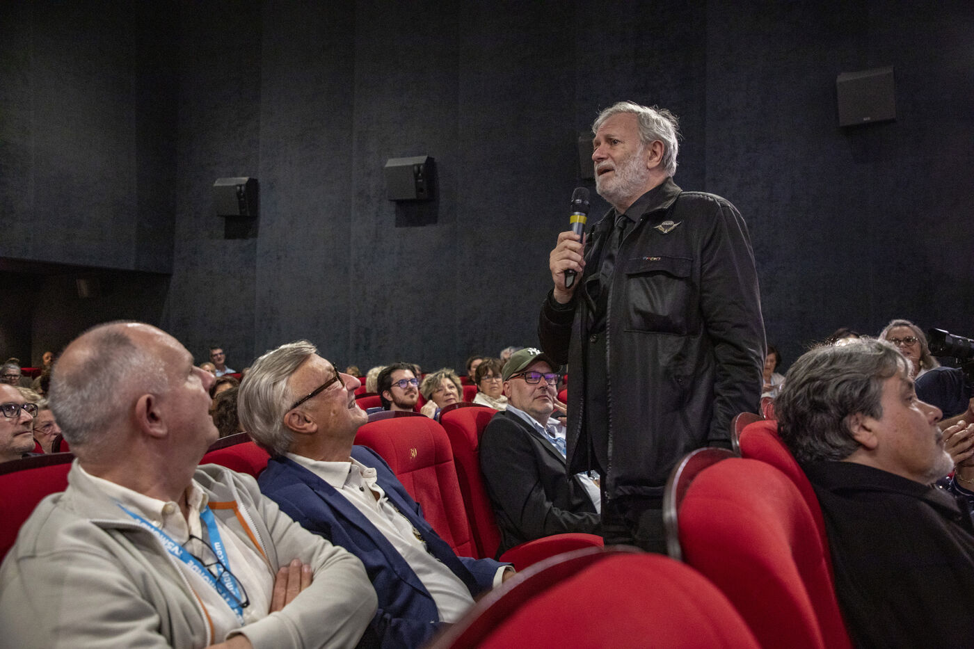 France, La Baule, 29-06-2024. A l?occasion du Festival Cinéma & Musique de film de La Baule, Claude Lelouch, invité d?honneur, a participé à une master class au cinéma le Golf Stream. Parmi les invités dans la salle, l?acteur Francis Huster et le compositeur Didier Barbelivien.