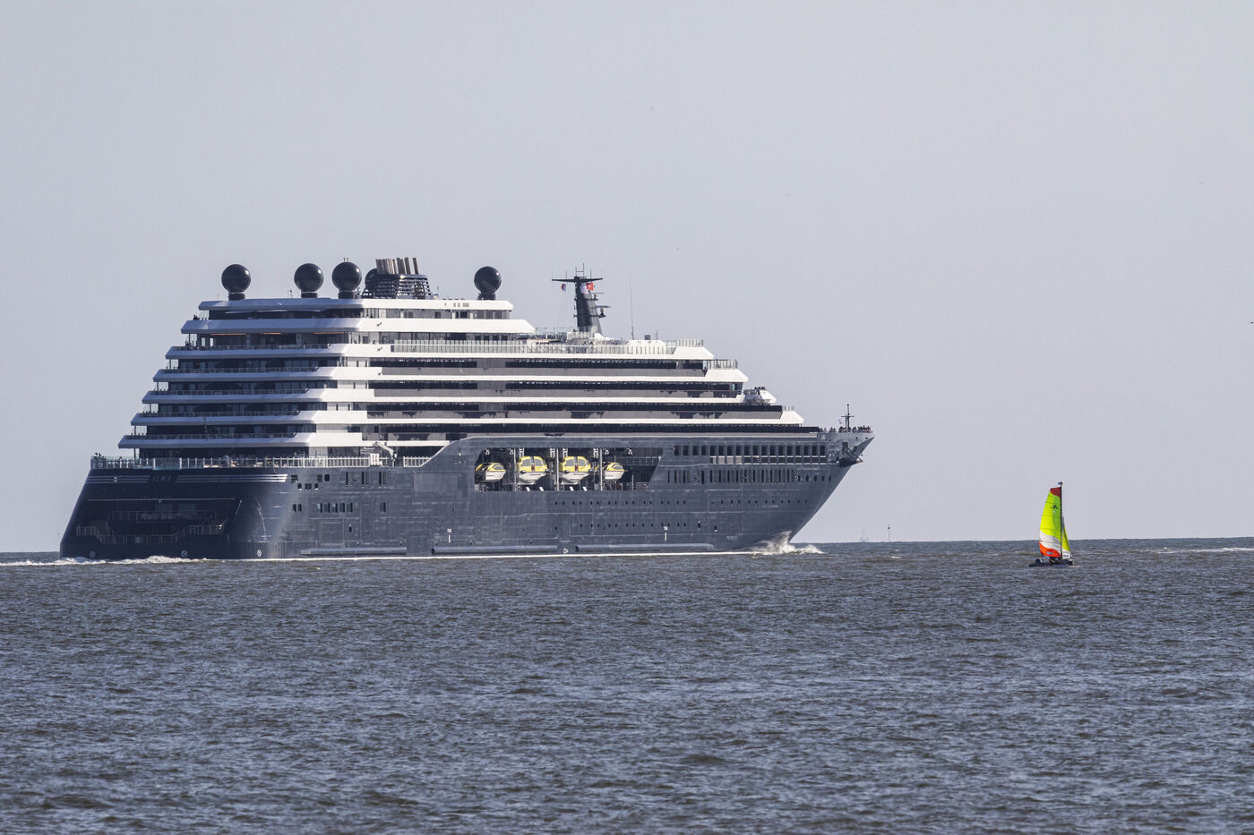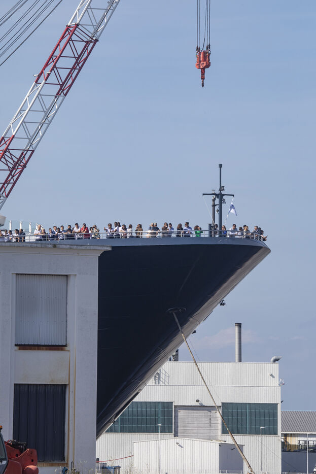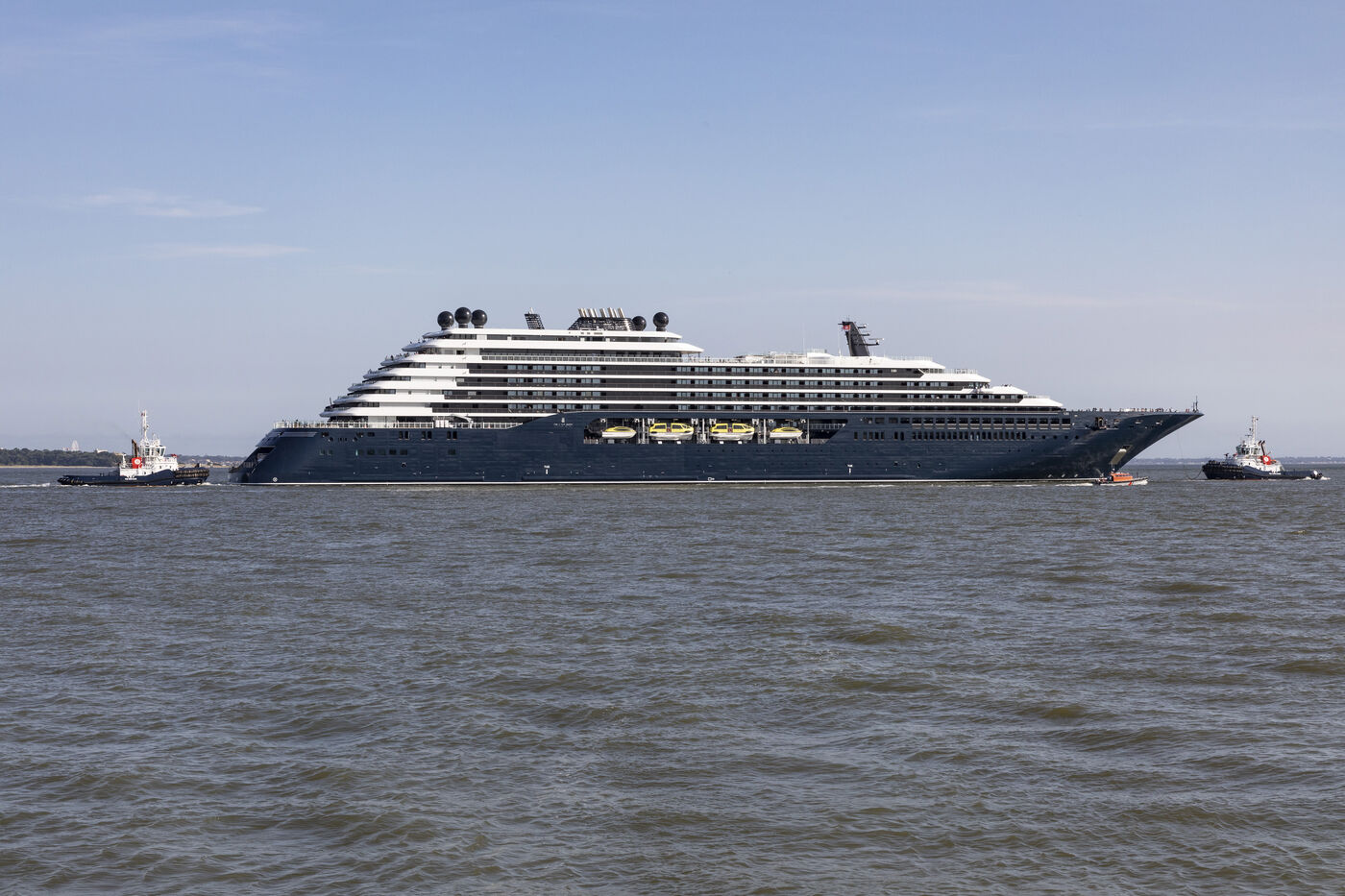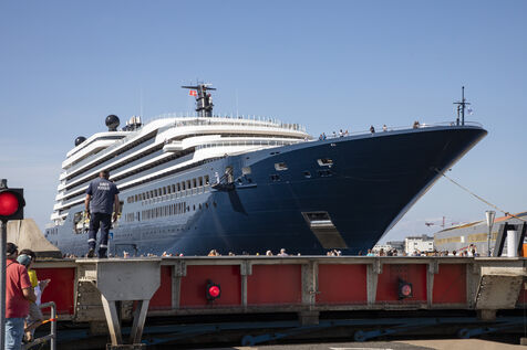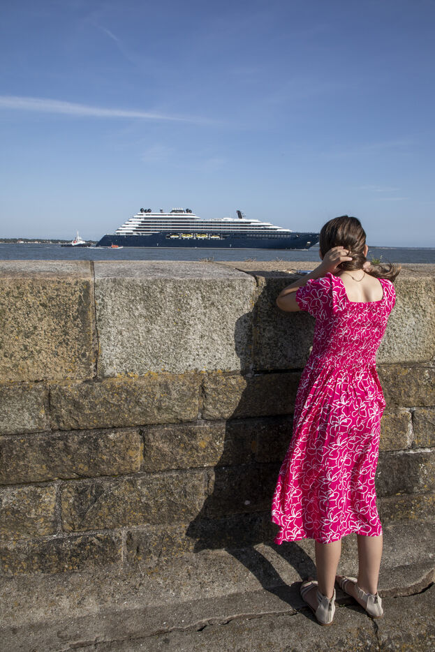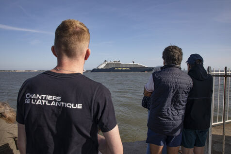 The Ilma, a 241-meter-long luxury superyacht belonging to the Ritz-Carlton hotel chain and built by Chantiers de l'Atlantique, left the port of Saint-Nazaire on Tuesday, July 23, 2024. This 224-suite luxury ocean-view liner is powered by LNG gas-fuel. After an inaugural voyage in early September from Monte Carlo, the Ilma will tour the Mediterranean basin, then the Caribbean and Northern Europe in summer 2025. Photography by Caroline Paux / Hans Lucas